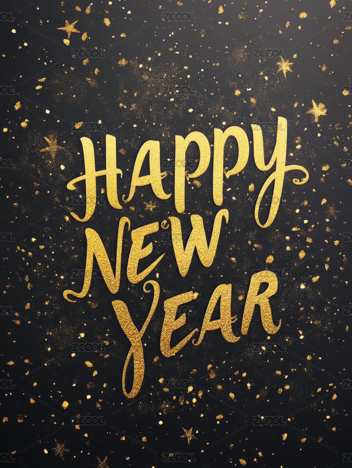 金色字体新年祝福语背景图