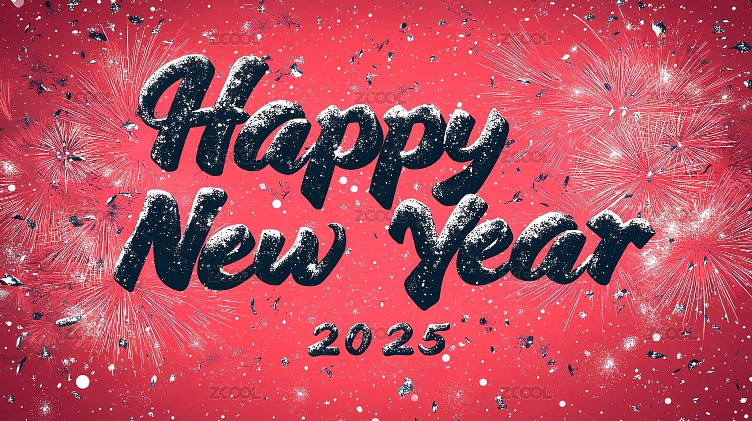 烟花和2025年新年快乐插画海报背景