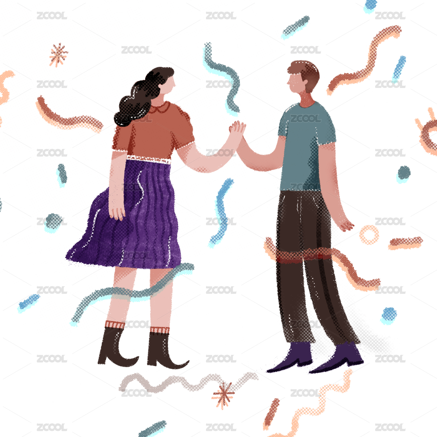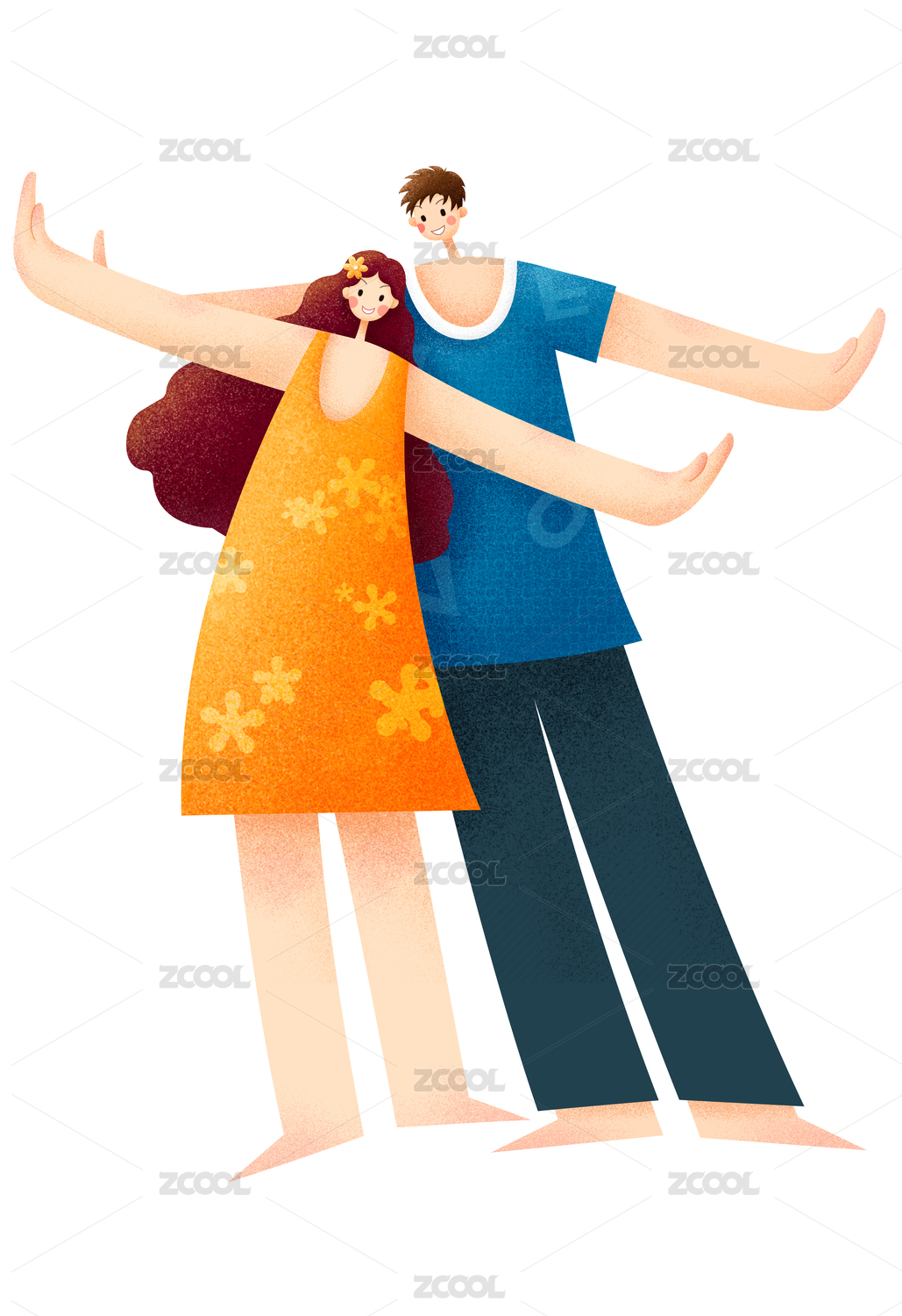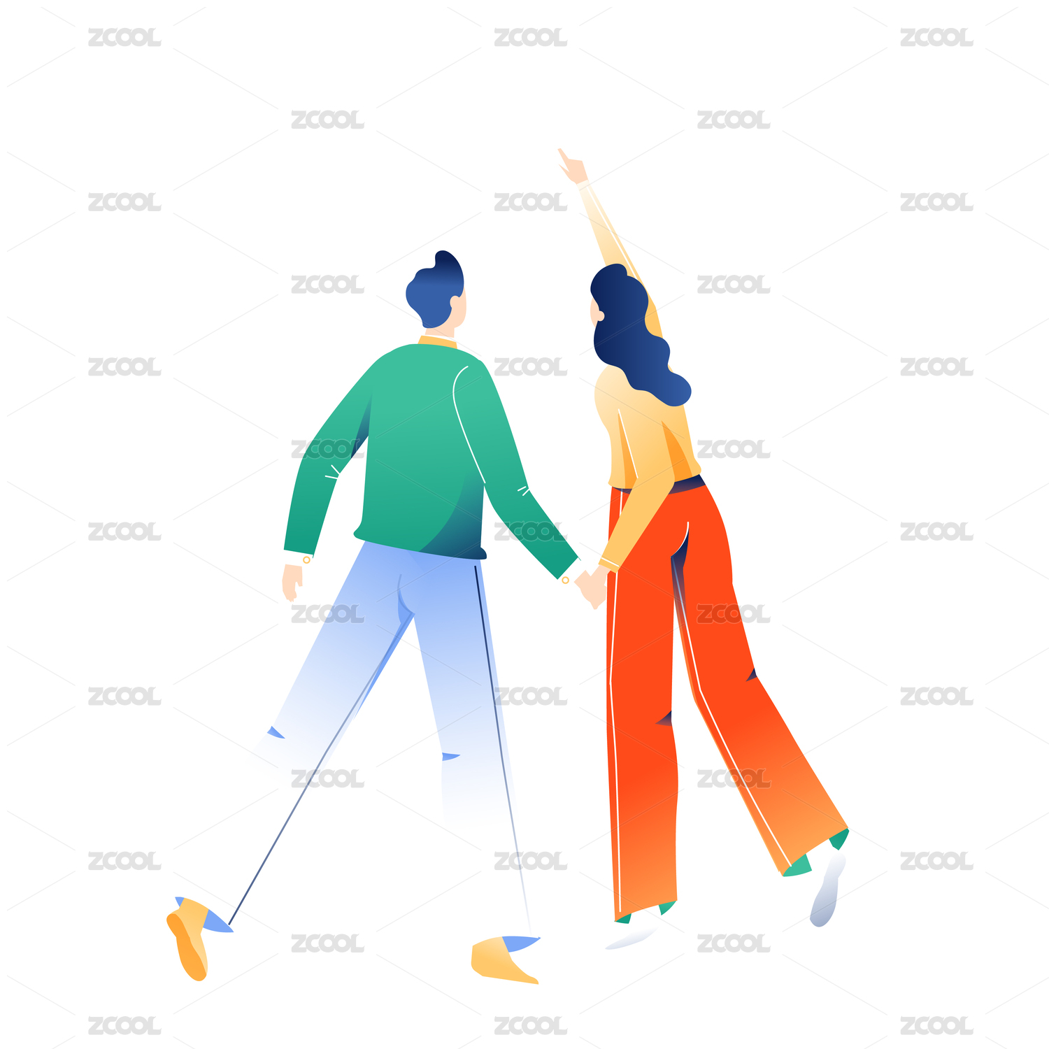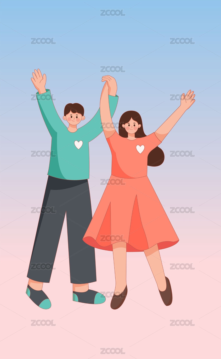 卡通手绘金币推广活动卡通男女跳跃素材插画