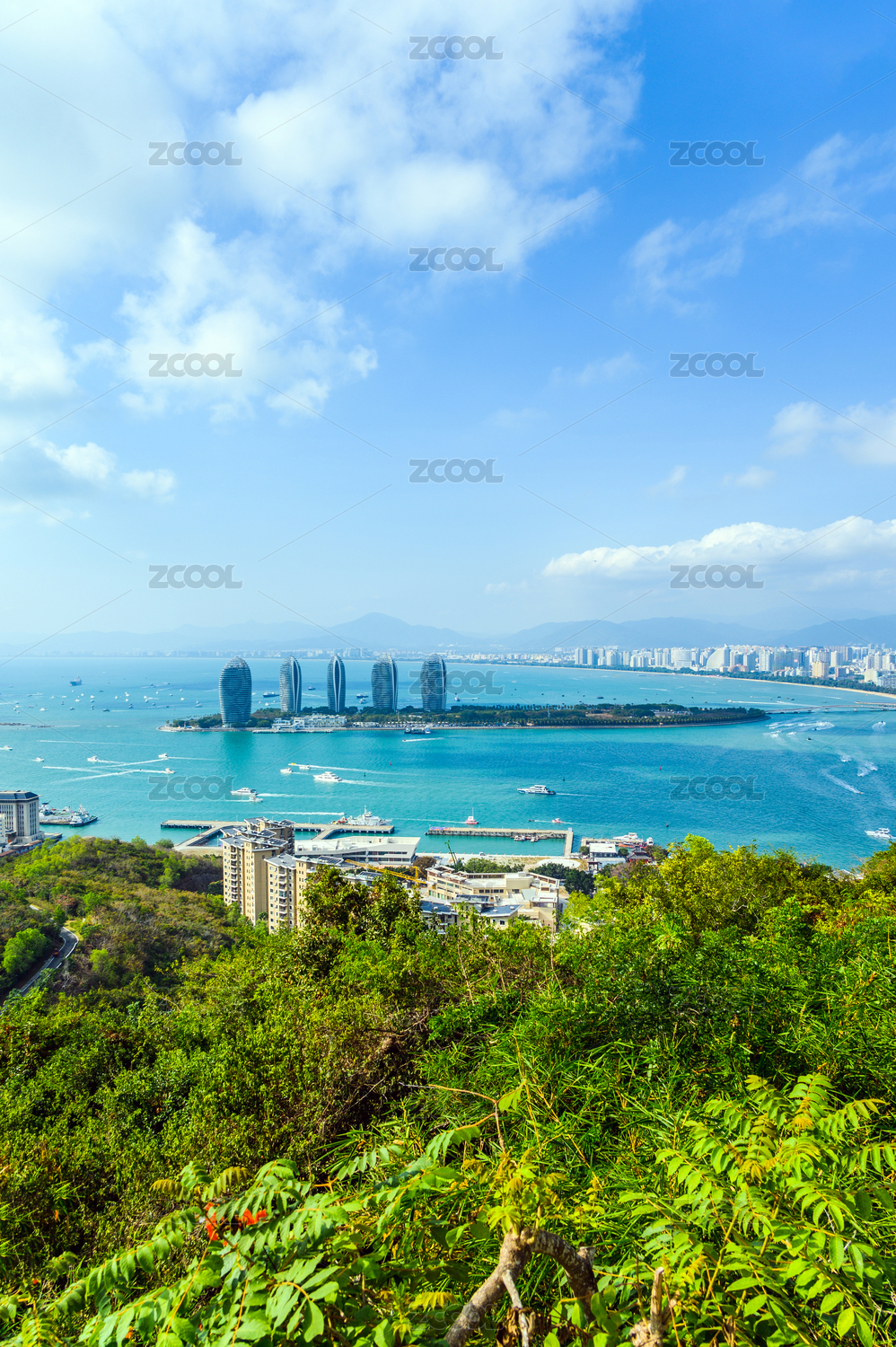 中国海南省三亚市海湾都市高楼建筑环境