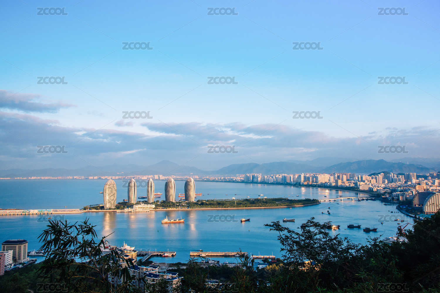 海南三亚鹿回头风景区俯瞰三亚湾、凤凰岛