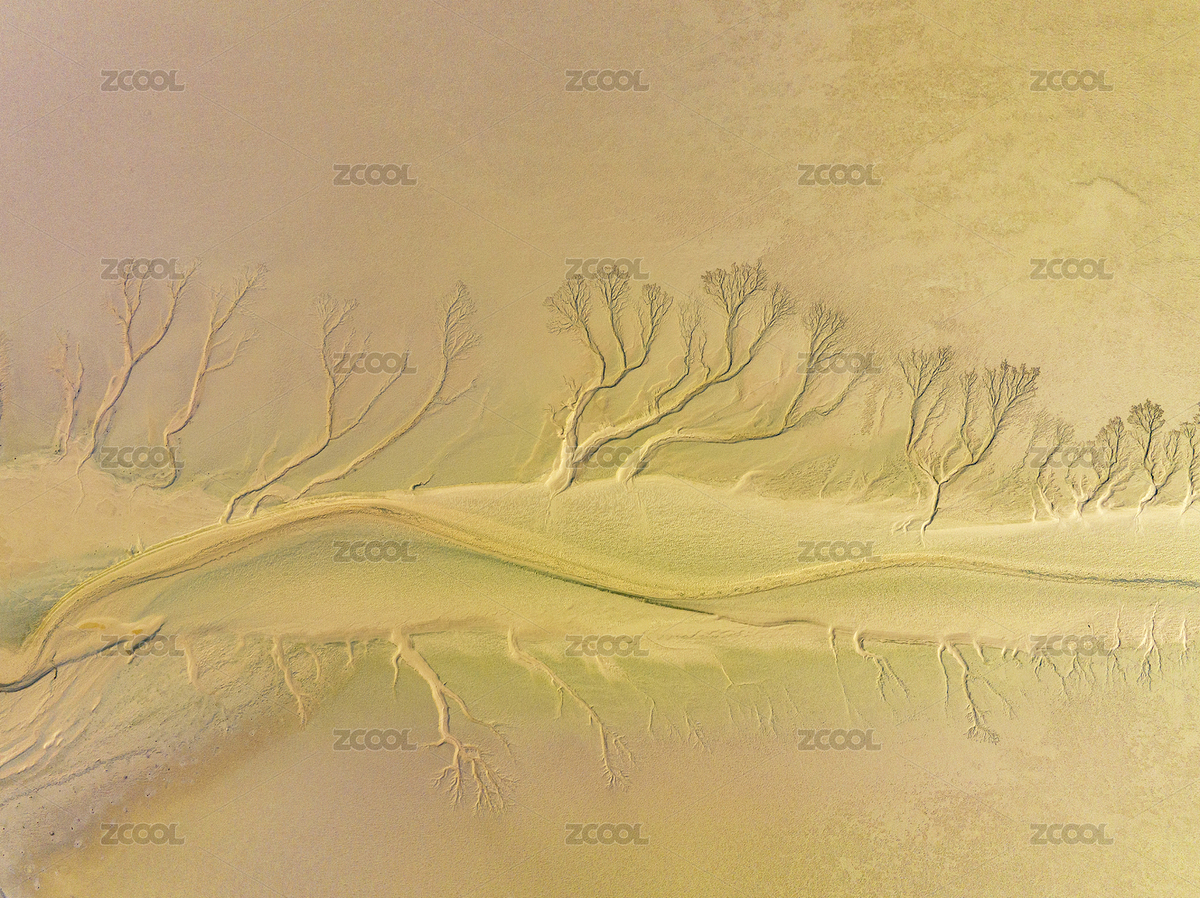 黄河沙滩河水干旱呈现唯美自然图案