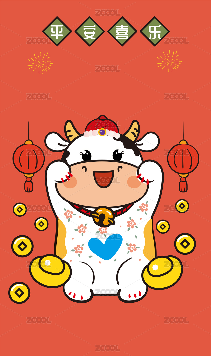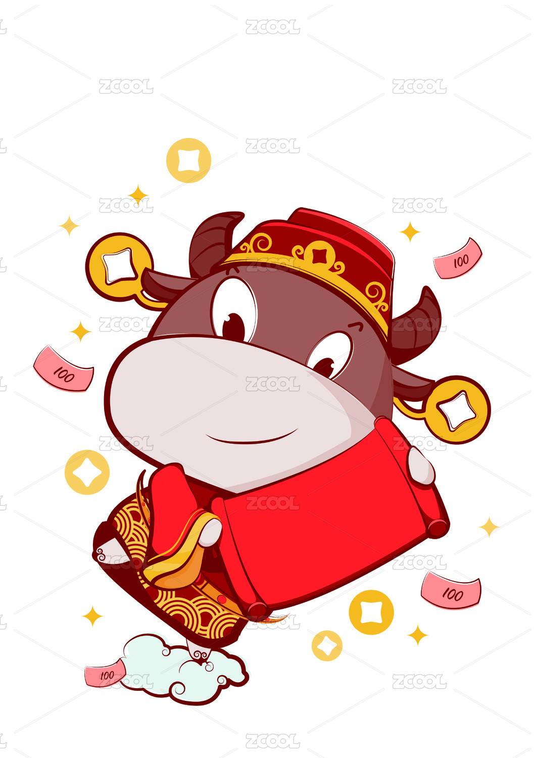 HEZODIAC2021,牛年,小牛,卡通,金牛,送福,春节,财神,新年,过年