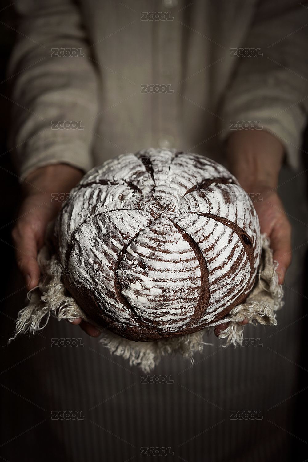 放在黑胡桃砧板上的黑加仑可可面包欧包