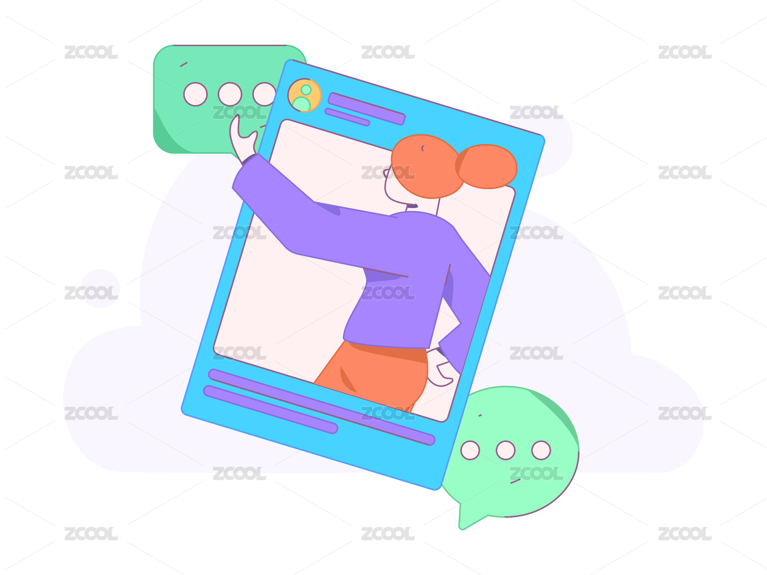 虚拟的人物社交沟通概念商业扁平矢量手绘插