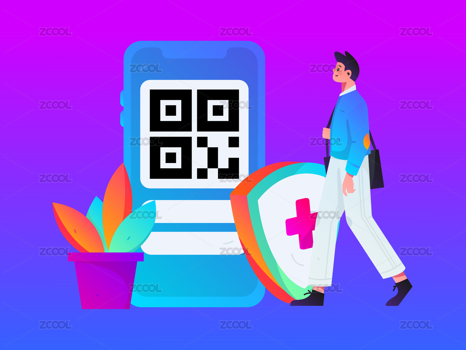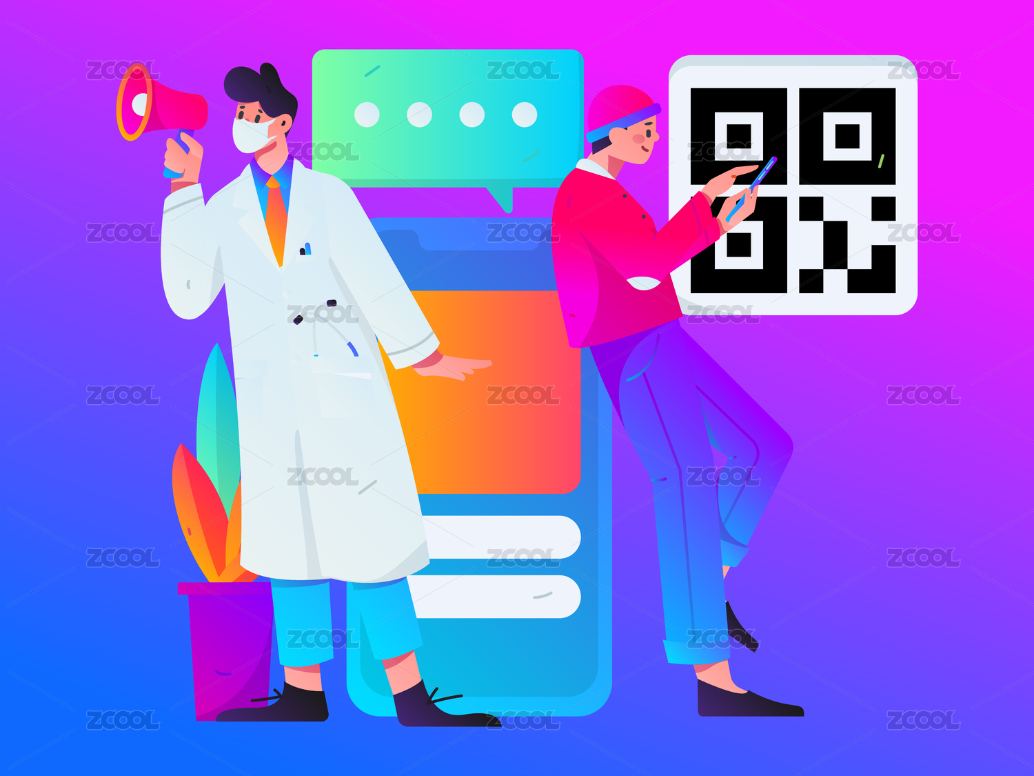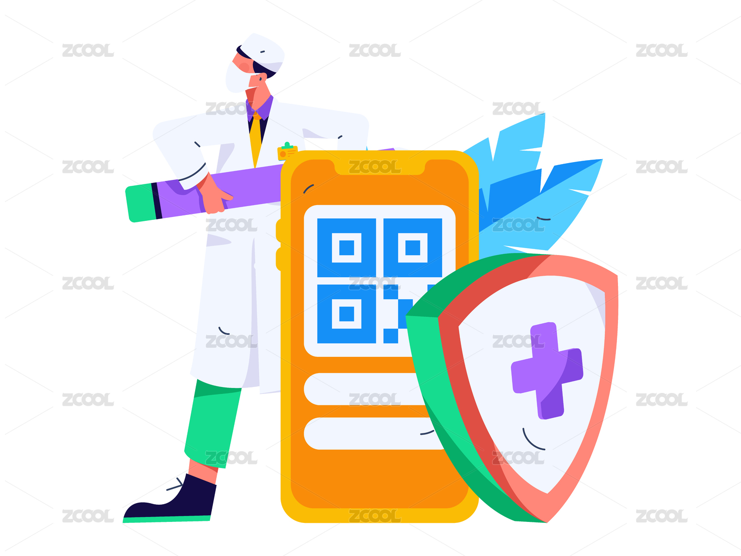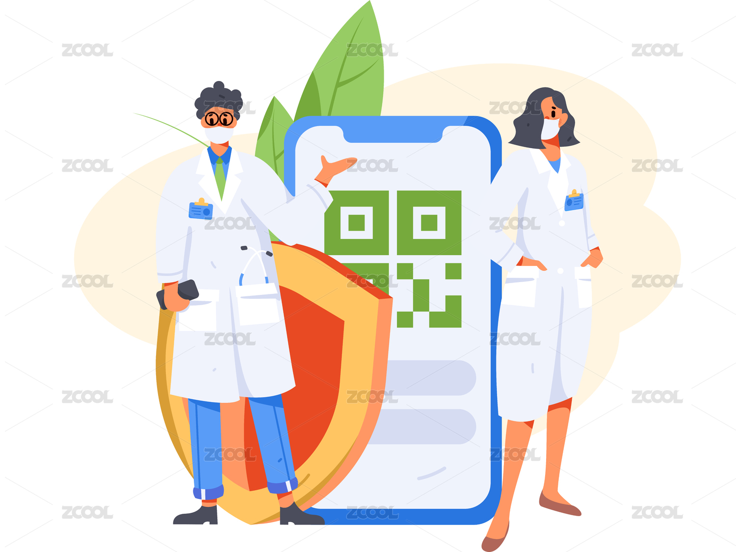 绿码医生防疫抗疫扁平矢量概念运营插画