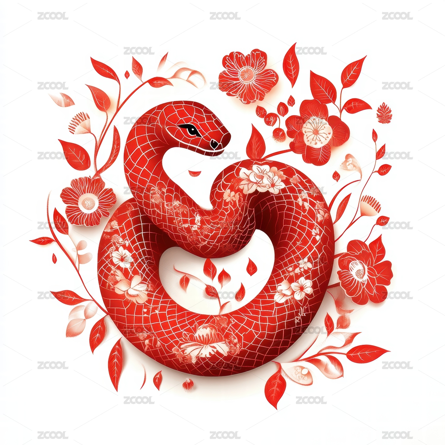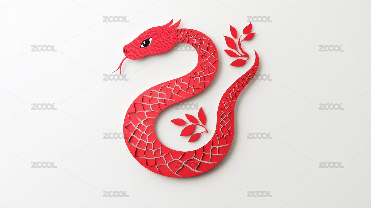中国剪纸蛇年凤凰红色剪纸插画背景