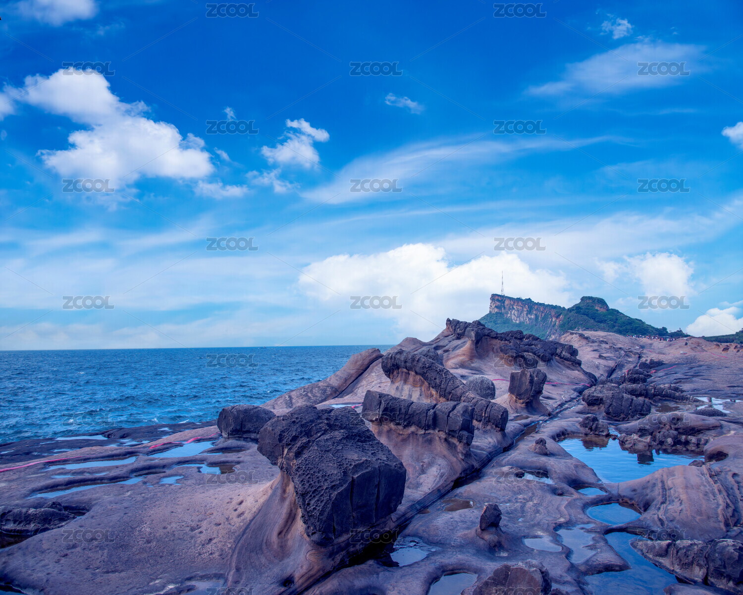 中国“野柳地质公园”的“僵石”奇特景观岩礁