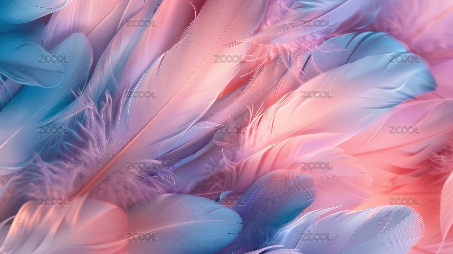 粉蓝羽毛与梦幻背景