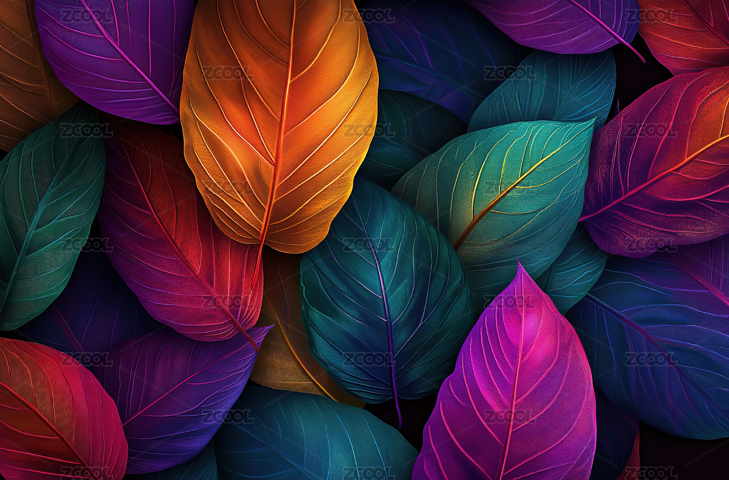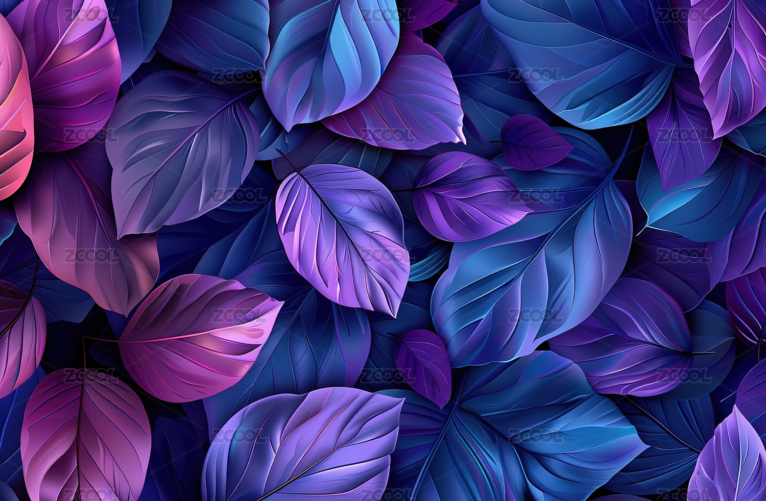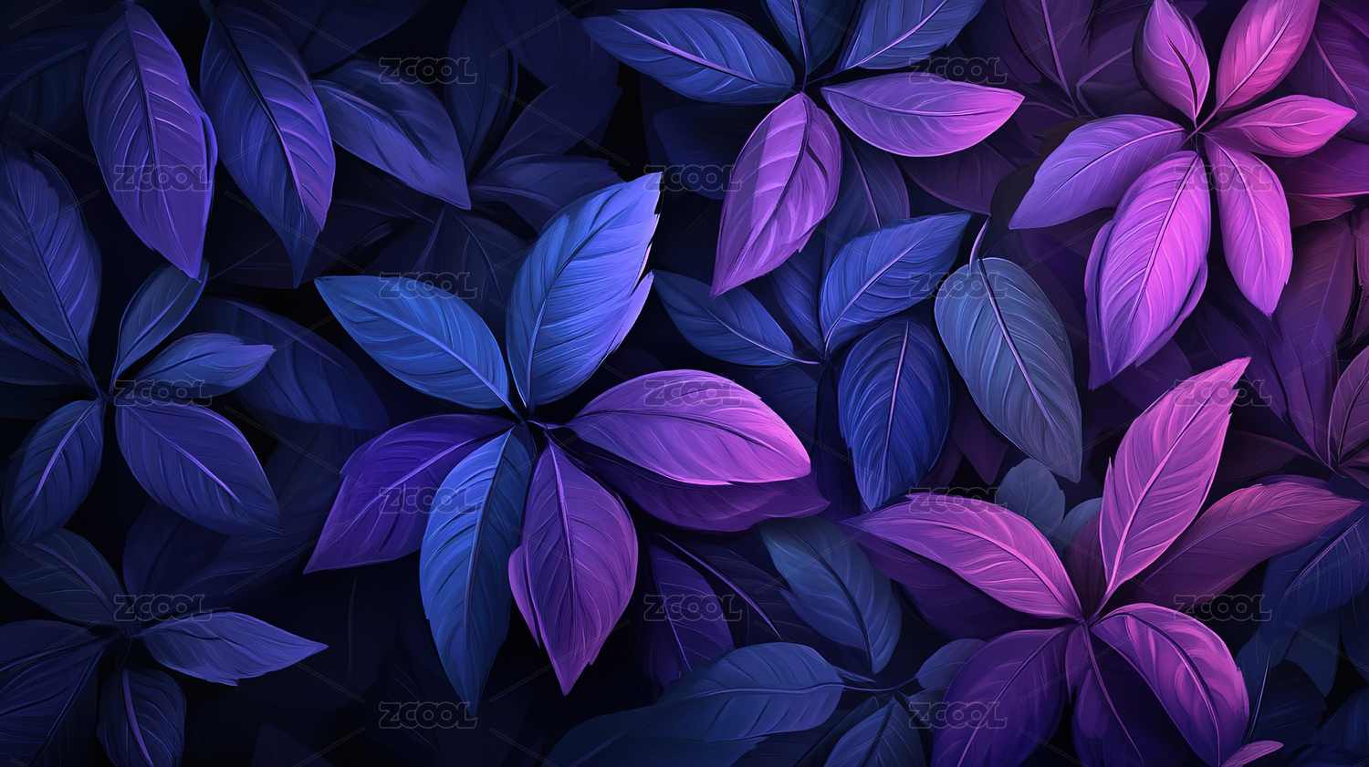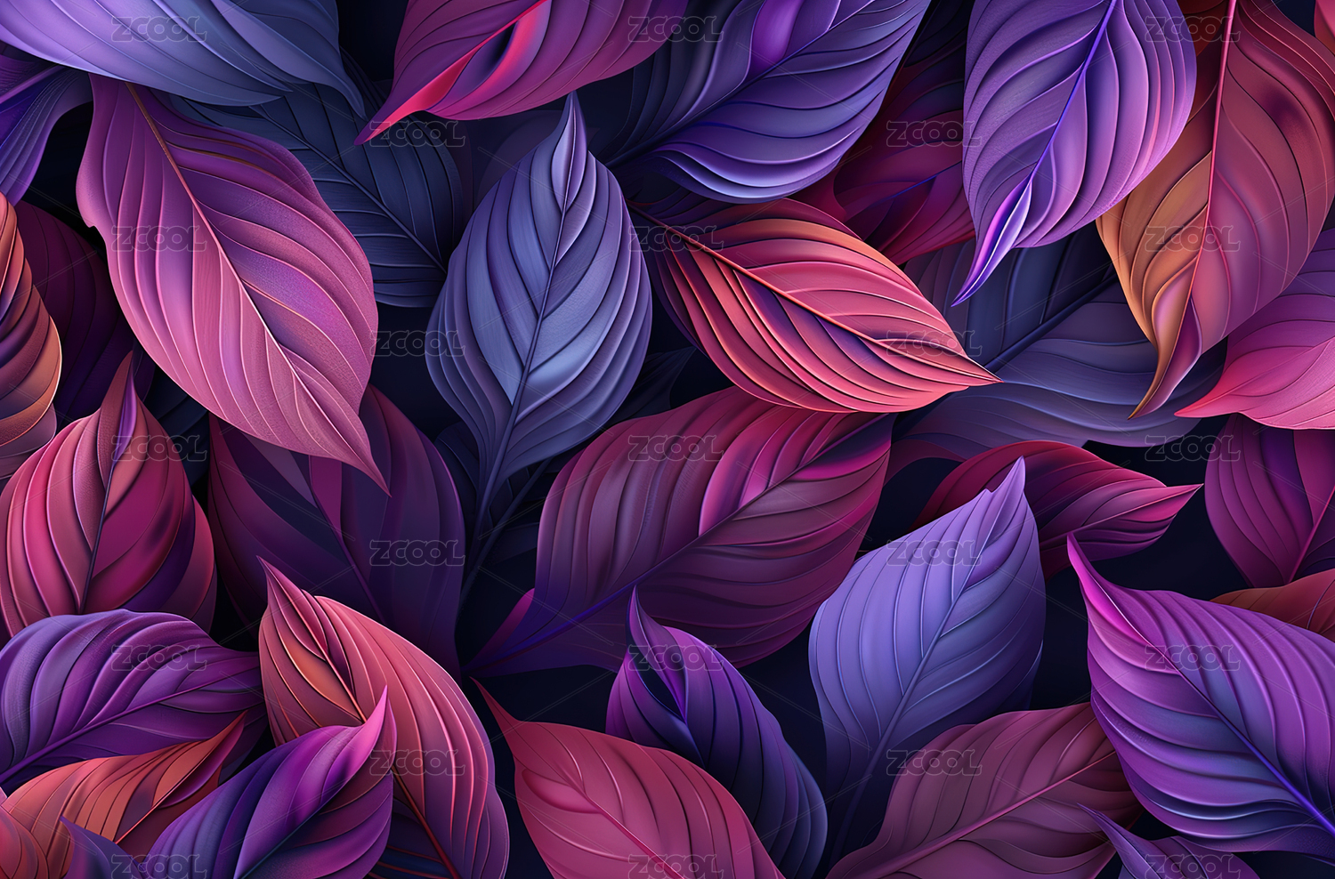 AI数字艺术,花,花瓣,叶子,紫色,特写,多色的,黑色背景,植物,自然美