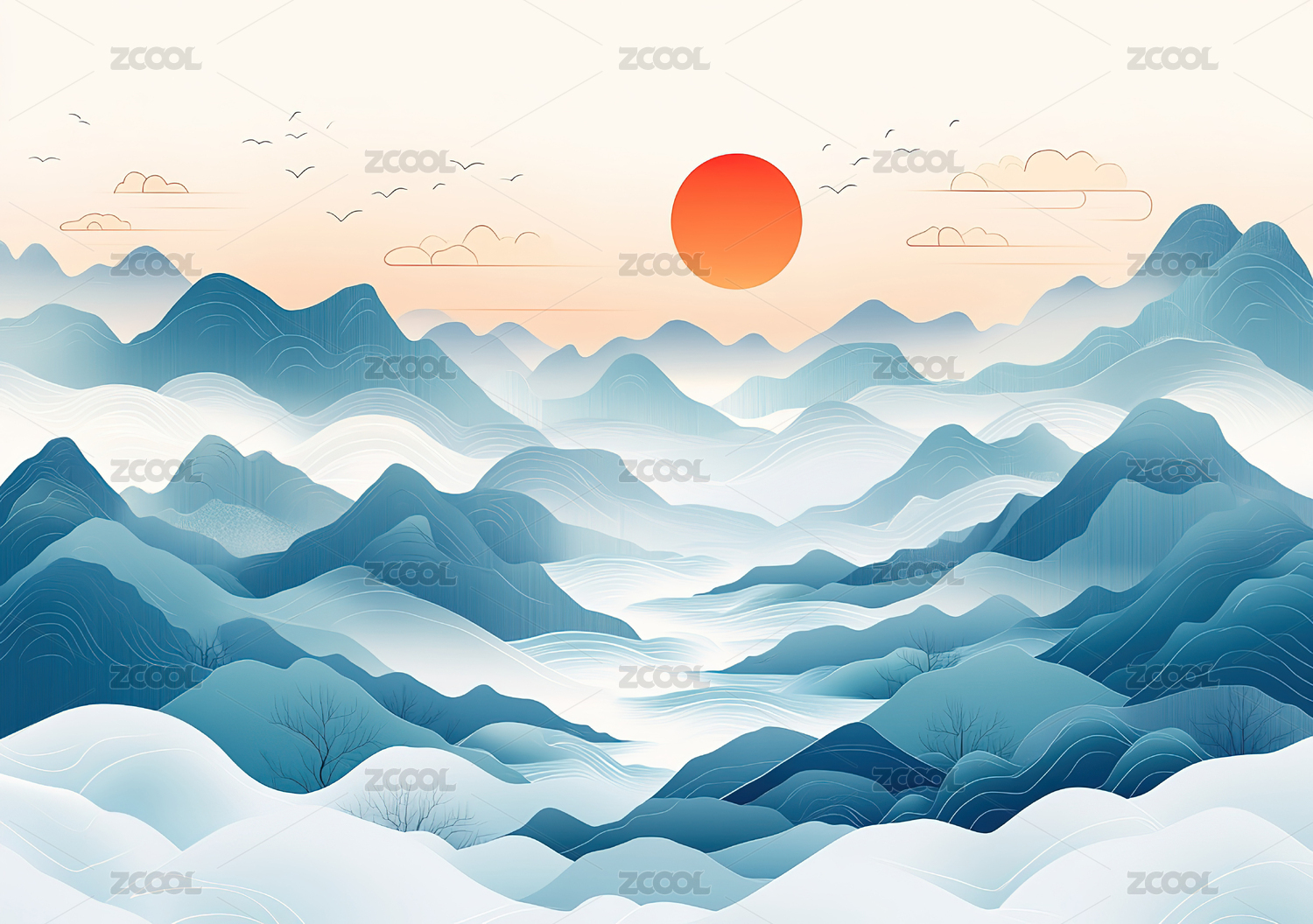 高山,户外,旅行,插画,地形,自然,天空,夏天,风景,背景