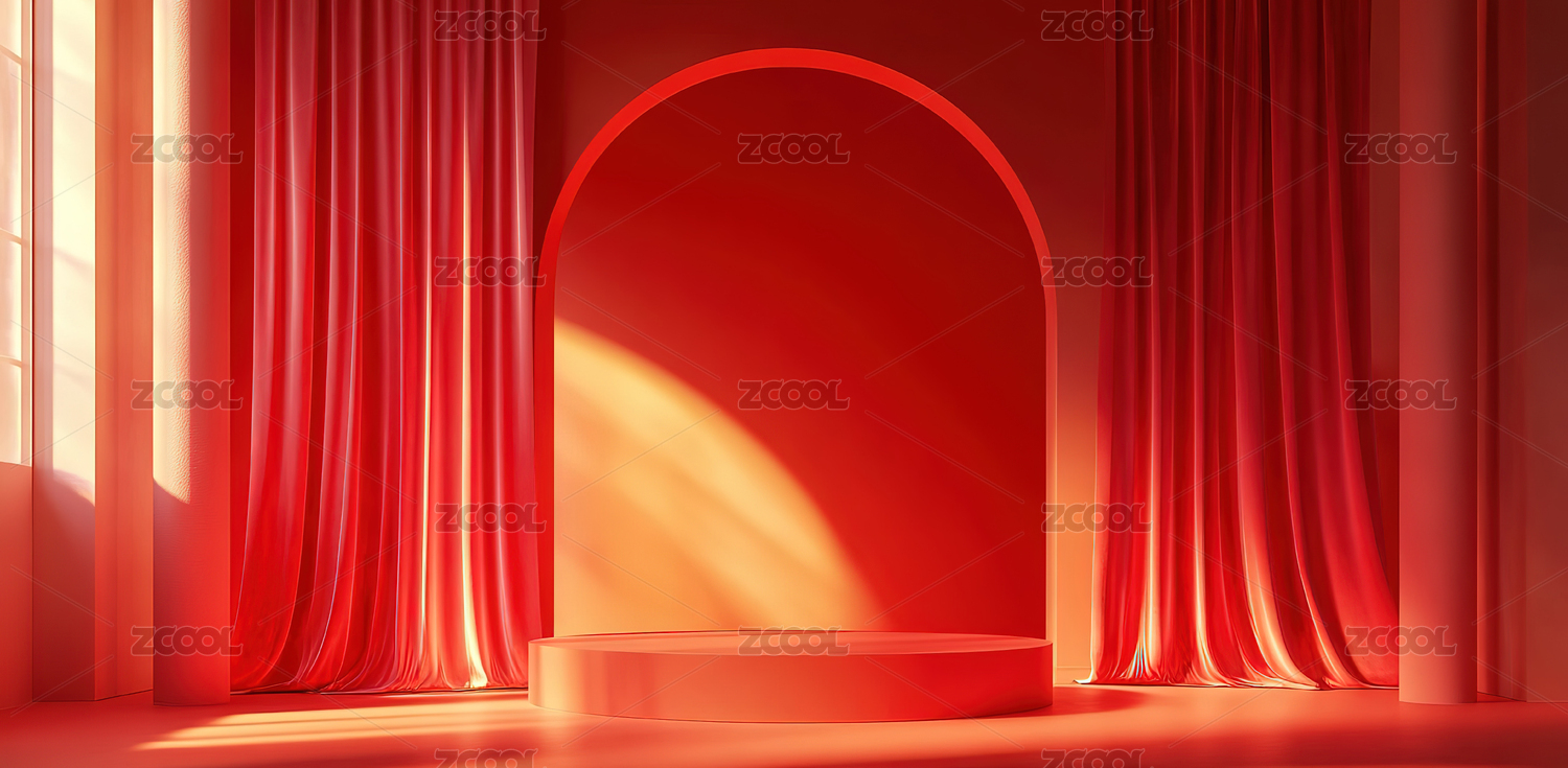 舞台,AI数字艺术,无人,产品展台,背景,促销,三维图形,红色,展览,人造空间