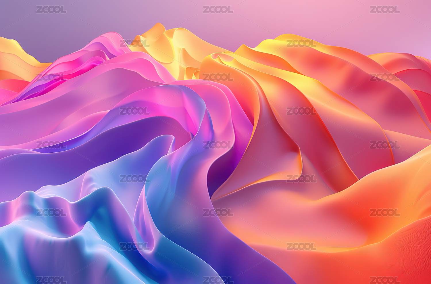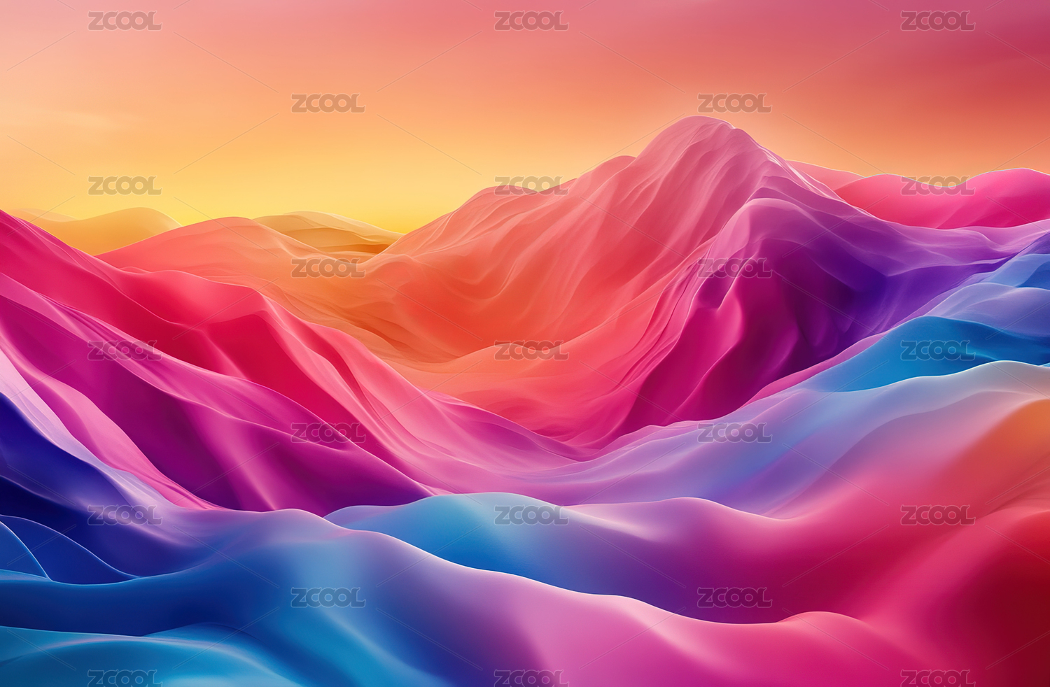 抽象时尚彩色荧光色颜料山峰3D立体插画
