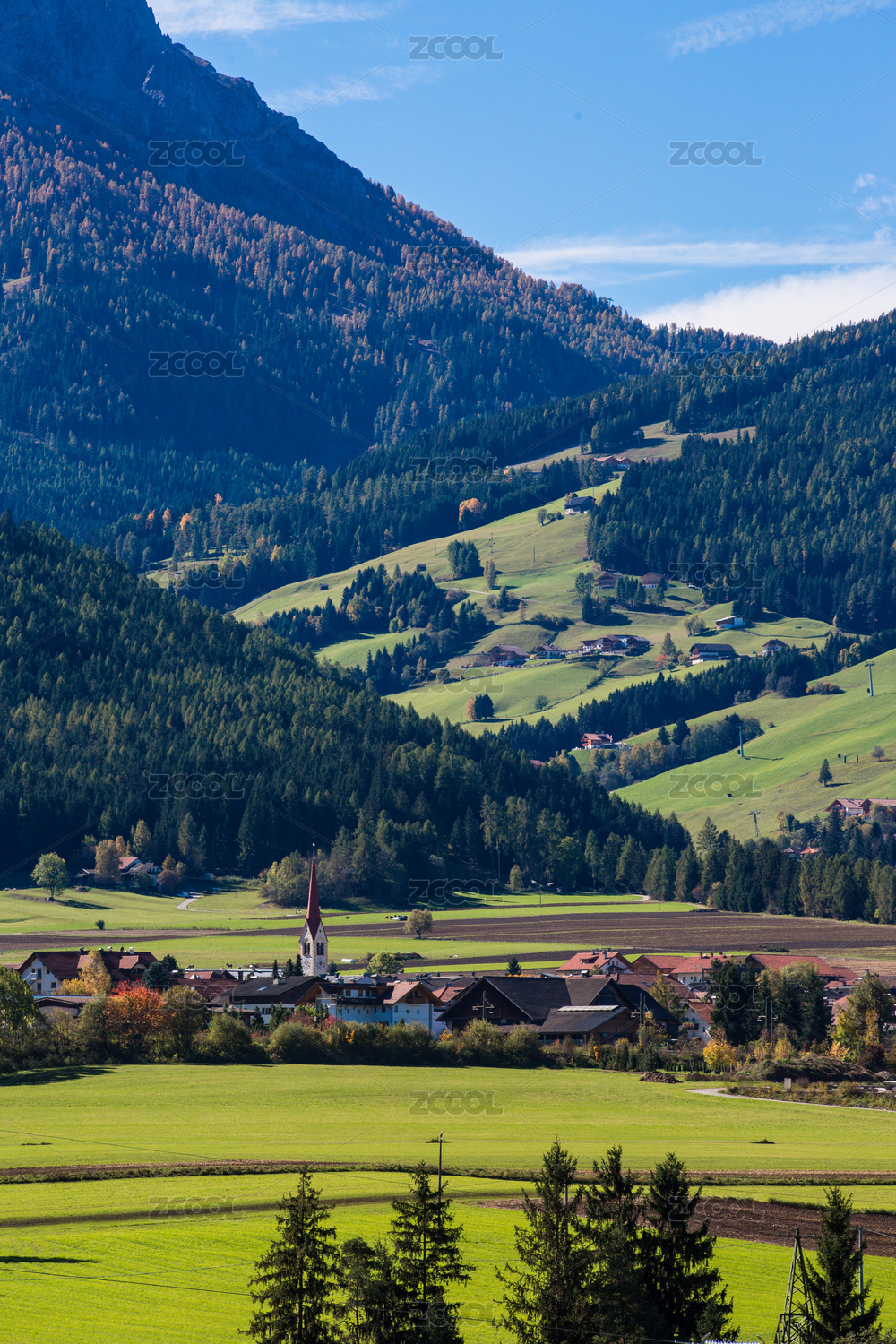 阴天欧洲意大利多洛米蒂富内斯小山村的田园风景