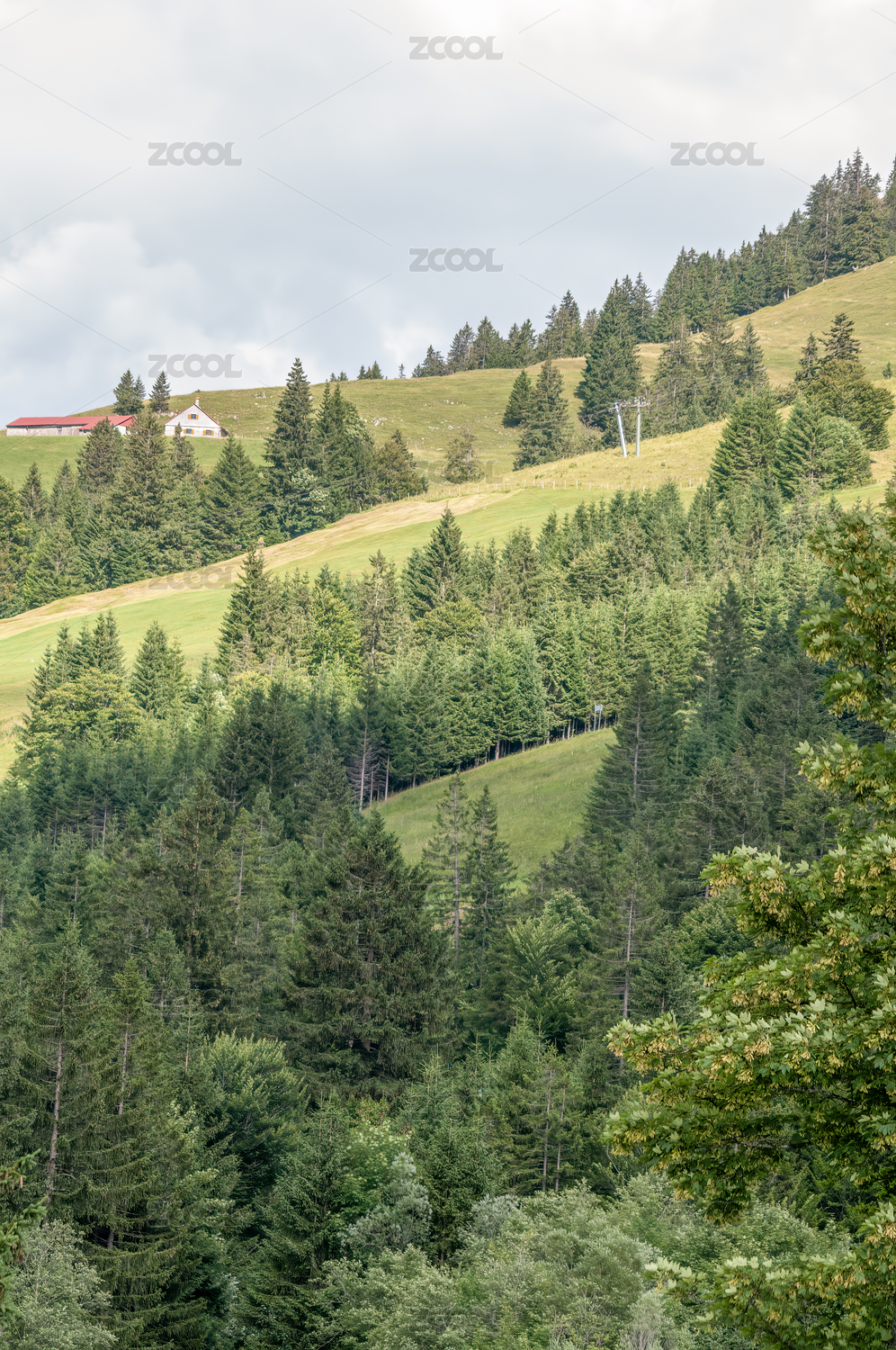德国巴伐利亚州新天鹅堡山下的草场和森林