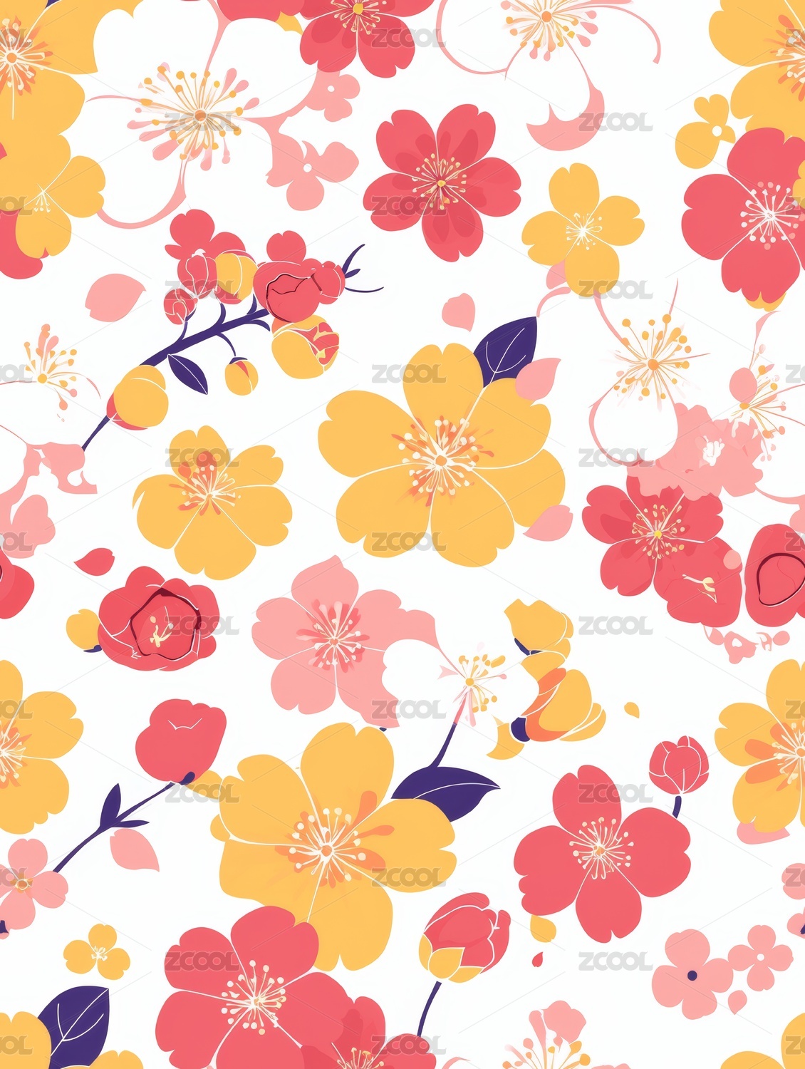 卡通图,图案,梅花,插画,背景,叶子,印花,壁纸