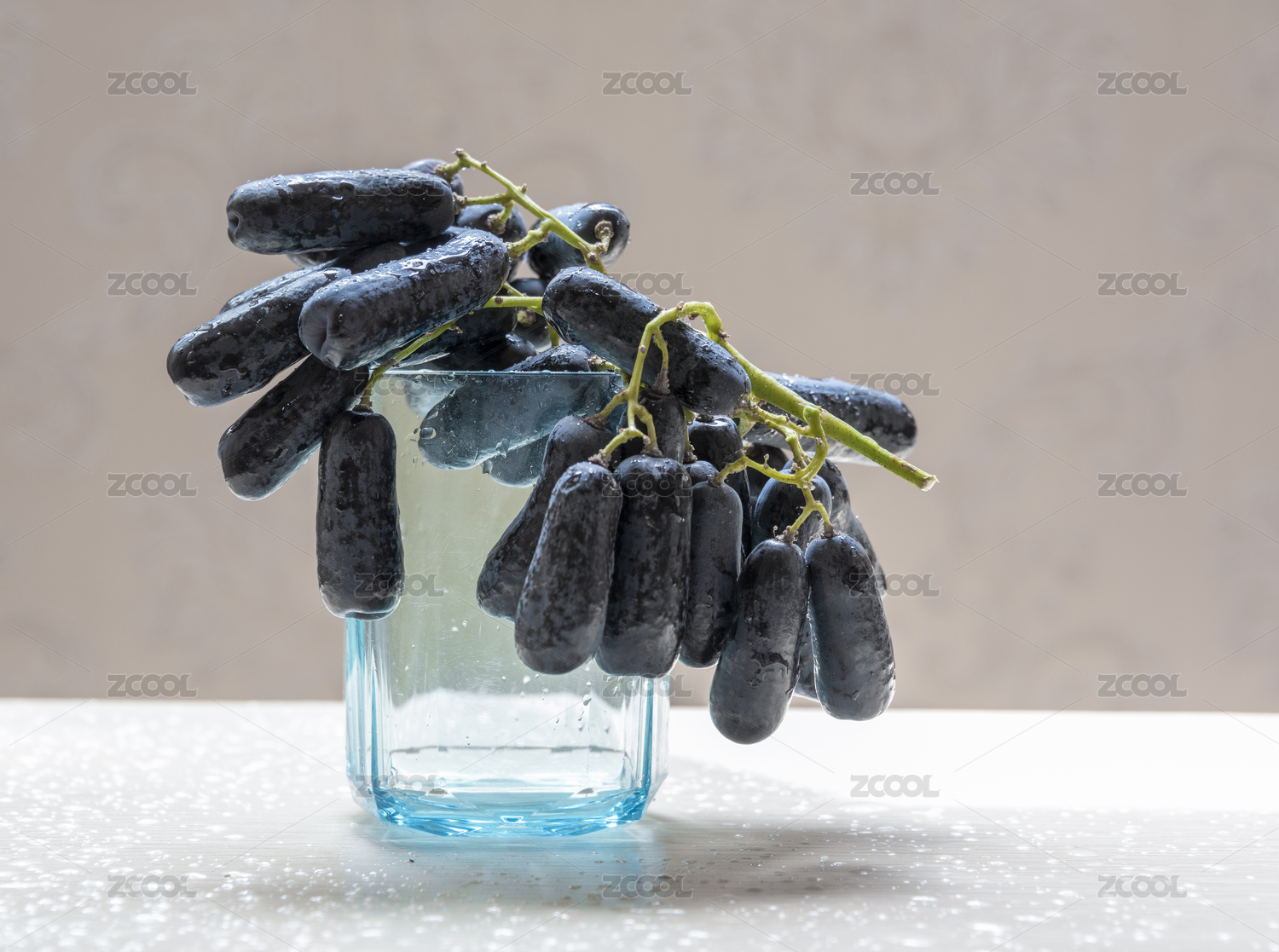 白背景上一串长黑提子