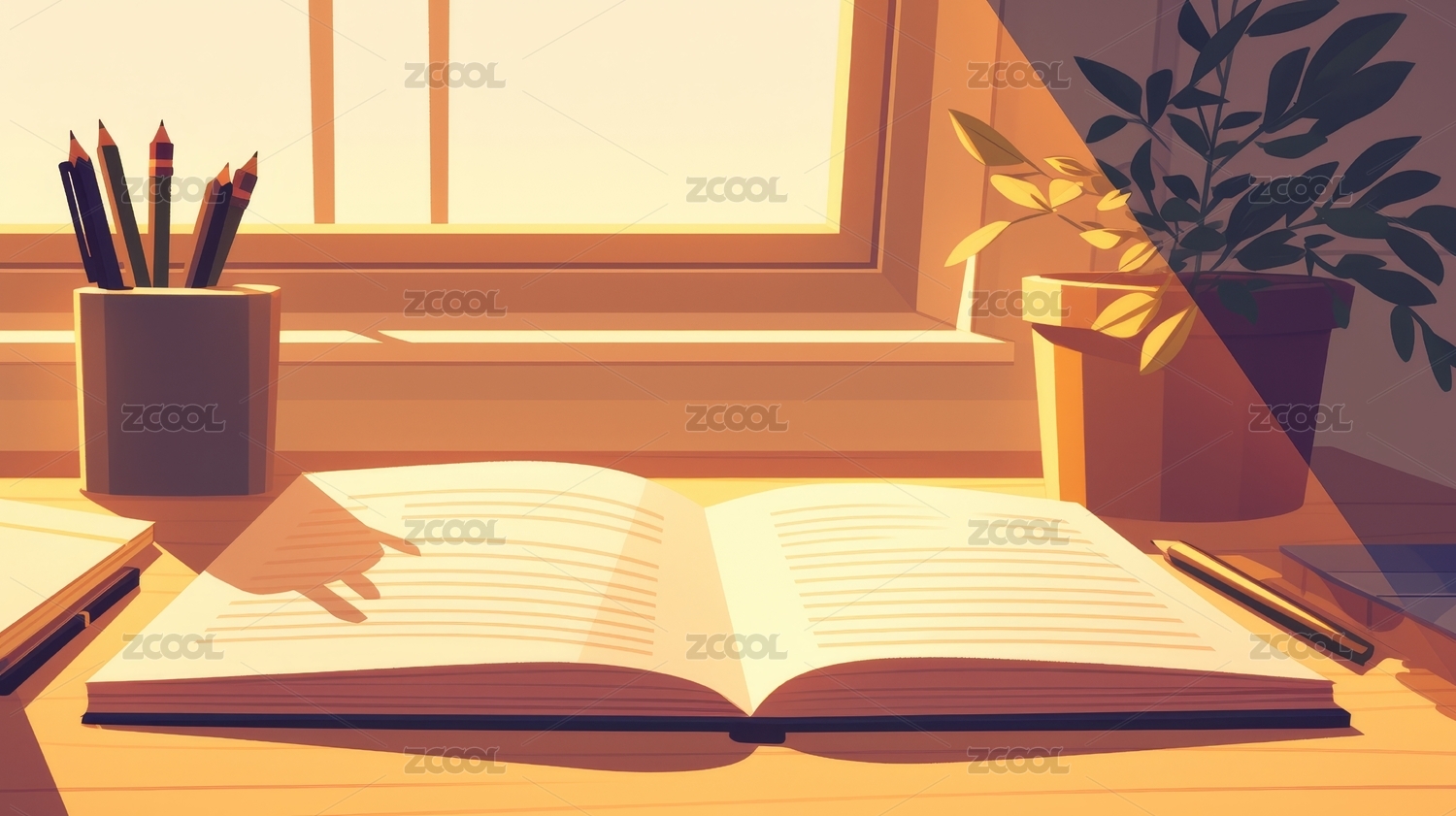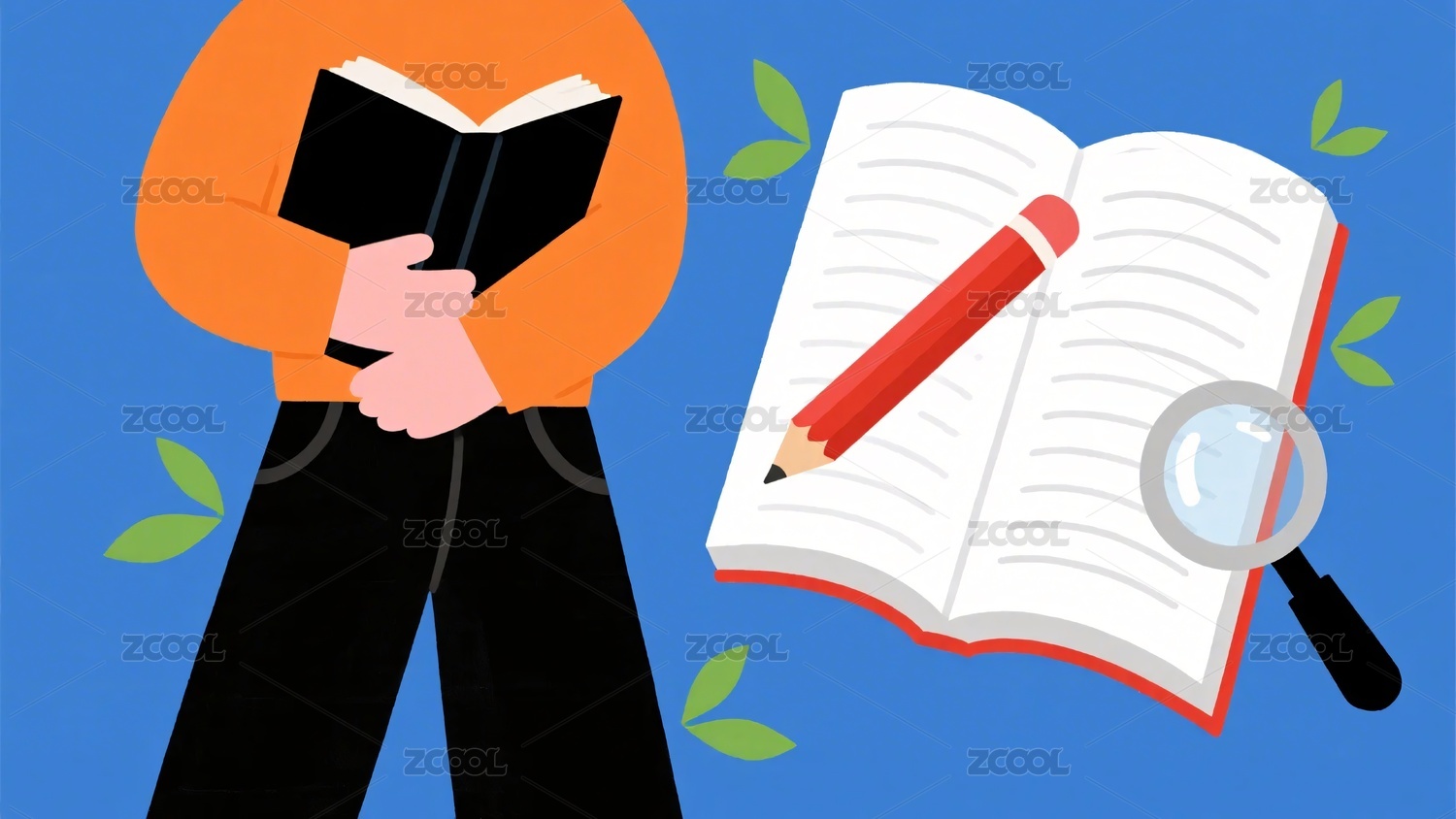 桌面上手拿着书本看书学习 剪纸风格国际扫盲日插画