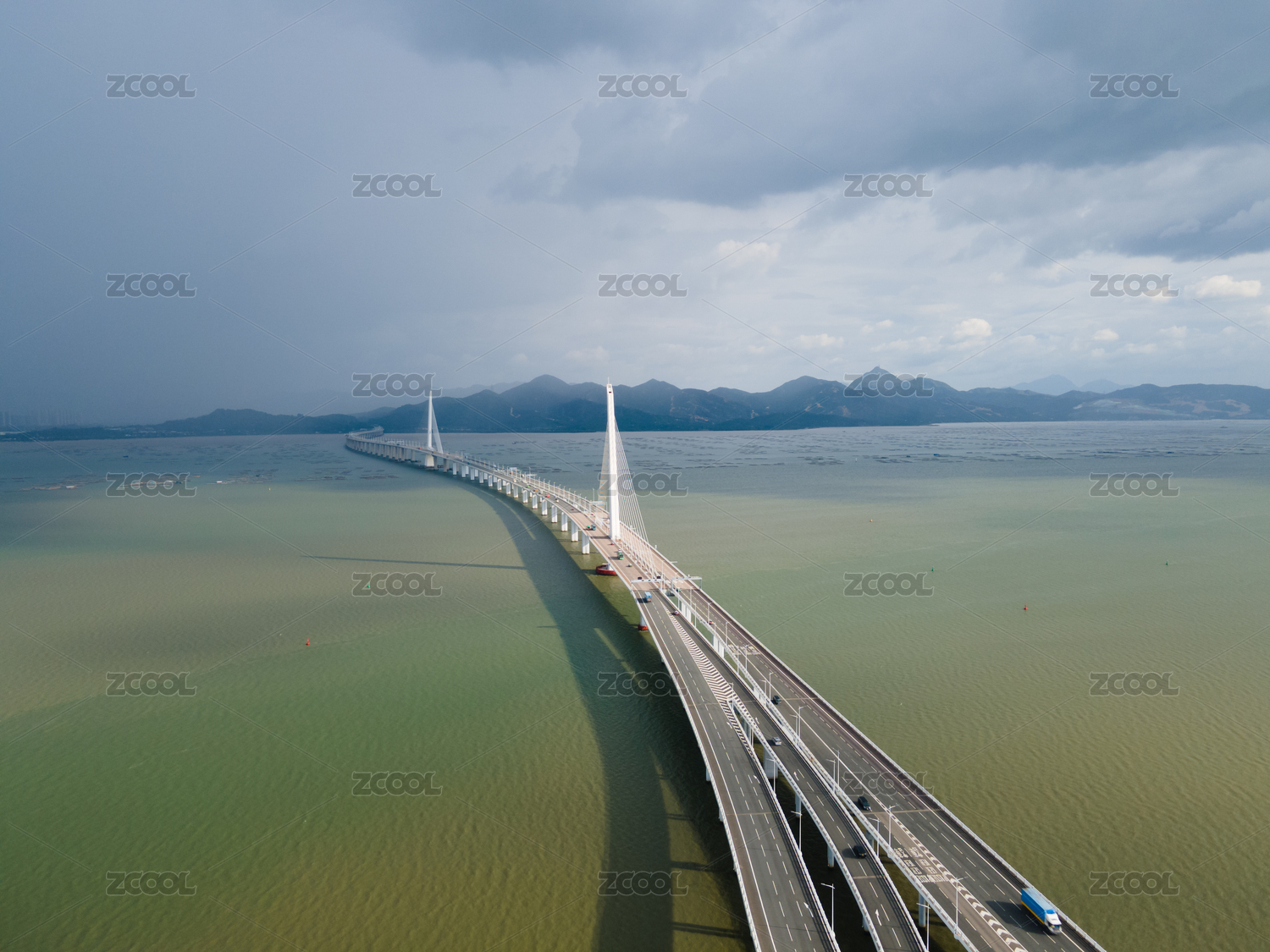 航拍摩羯台风天的深圳湾大桥 跨海大桥