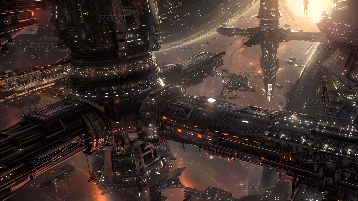 一个未来科幻城市的外景,外星建筑风貌俯瞰