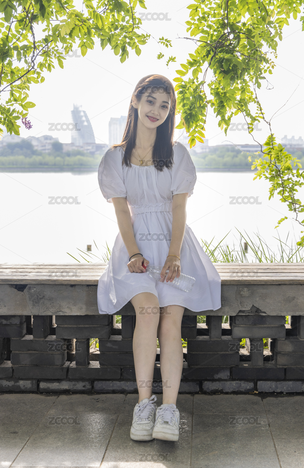 湖边,女孩,舒适的天气,夏季,小清新,写真,阳光,连衣裙,白色连衣裙,纯洁