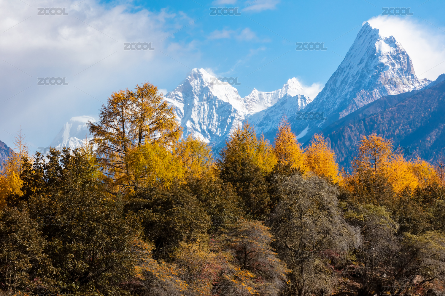 稻城亚丁神山夏诺多吉在清晨的秋景