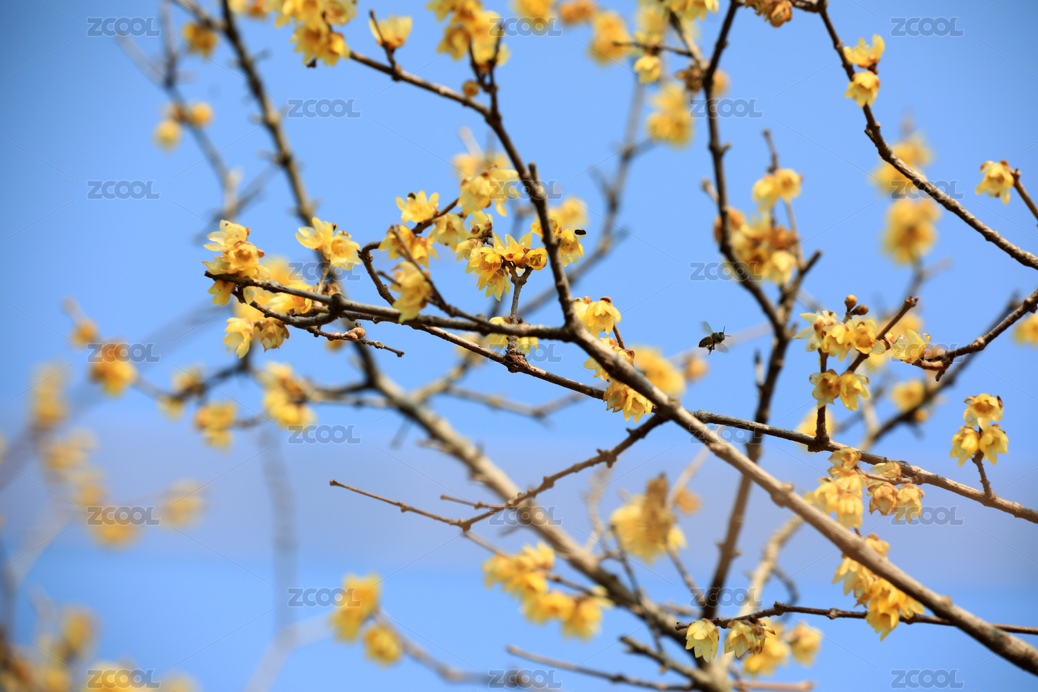 蓝天下盛开的腊梅花