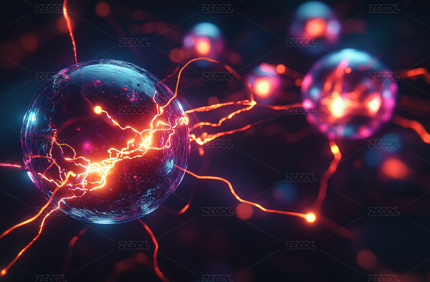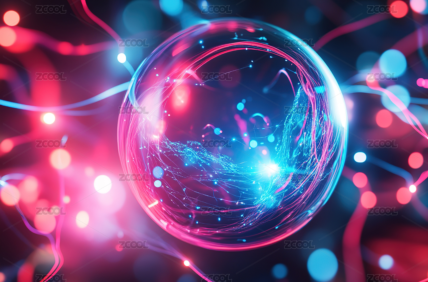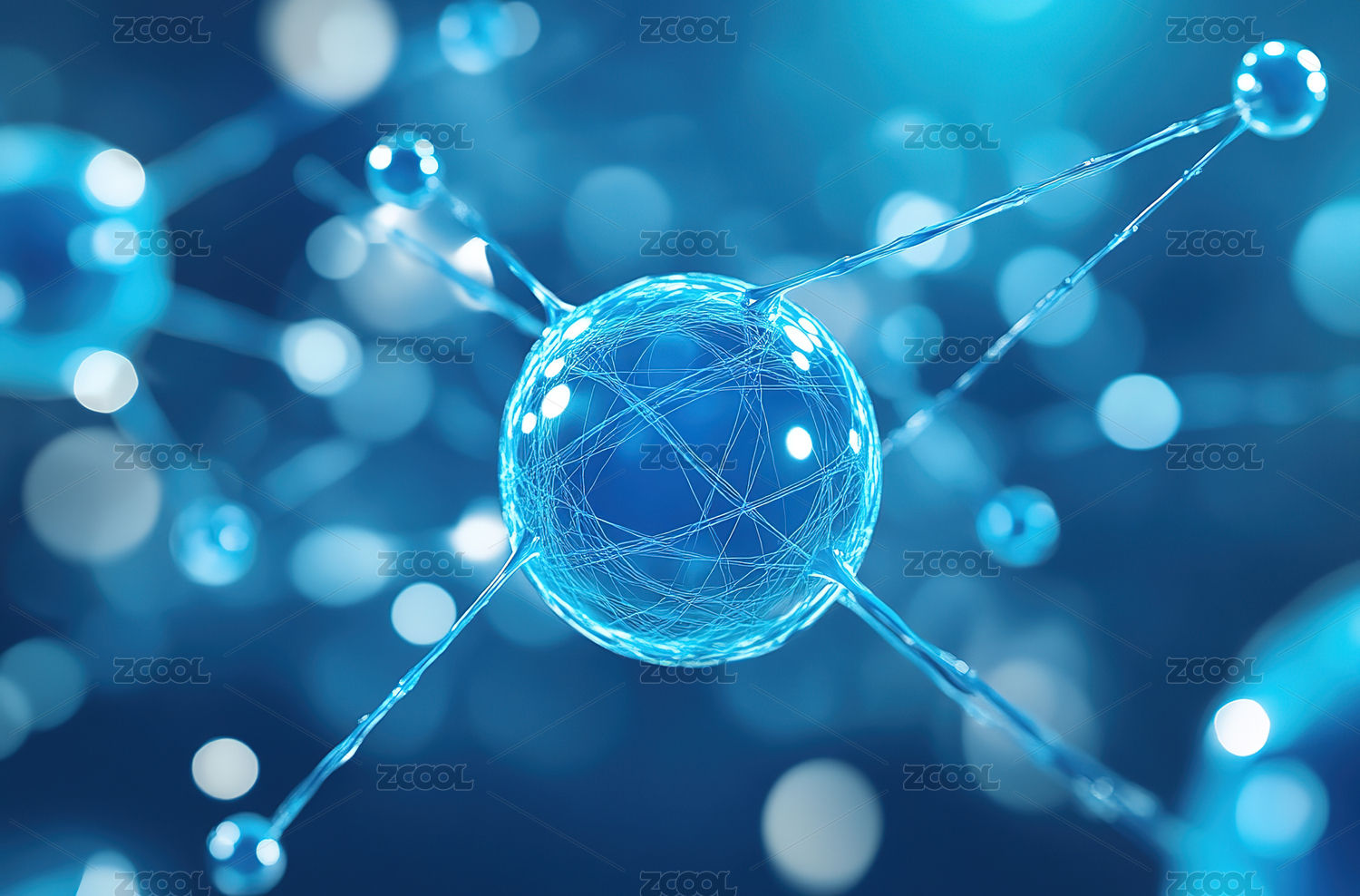 深蓝色背景下的蓝色发光玻璃圆球抽象背景