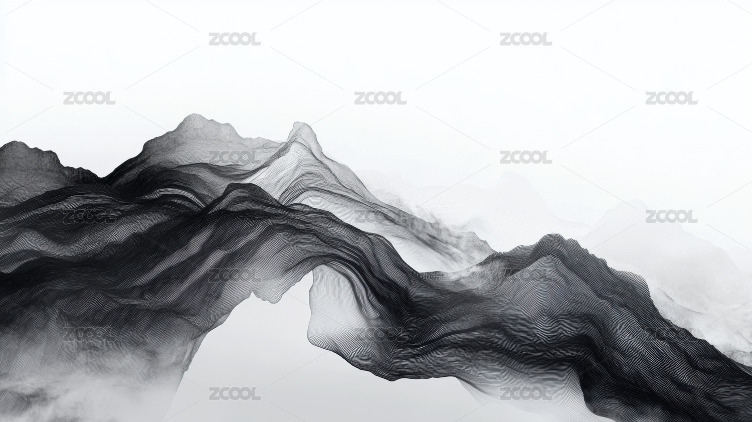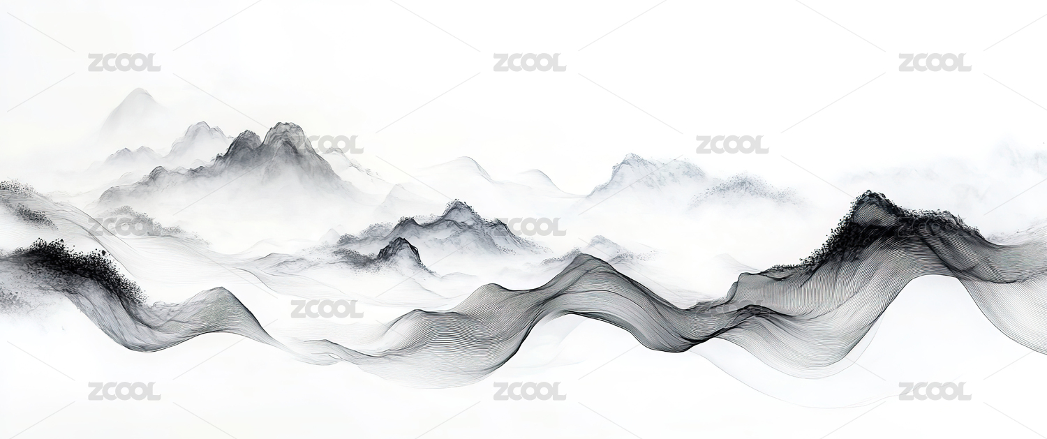 中国风云雾缭绕意境深远的沙画质感水墨山水