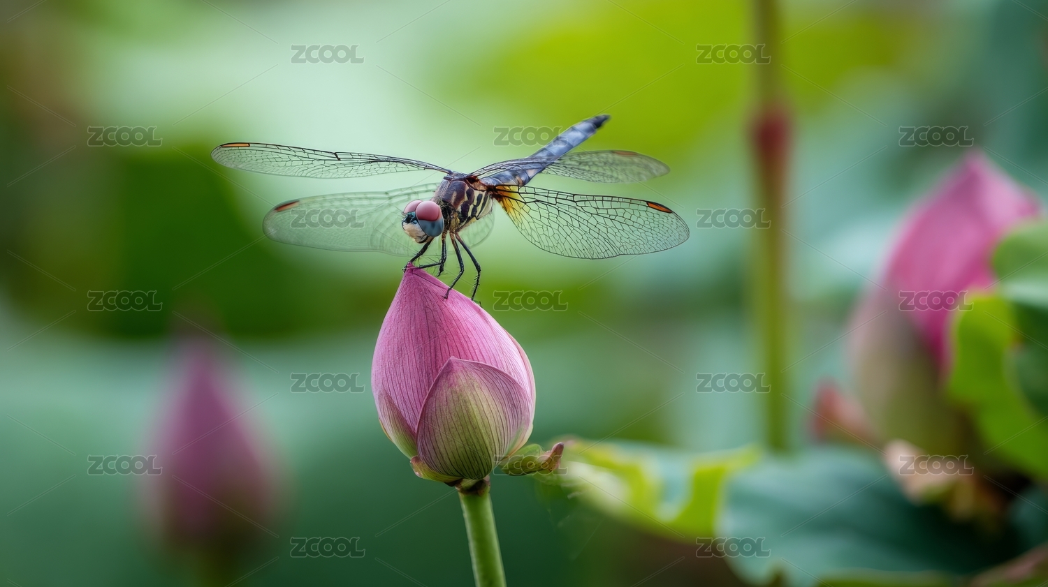 站在荷花花蕾上的蜻蜓