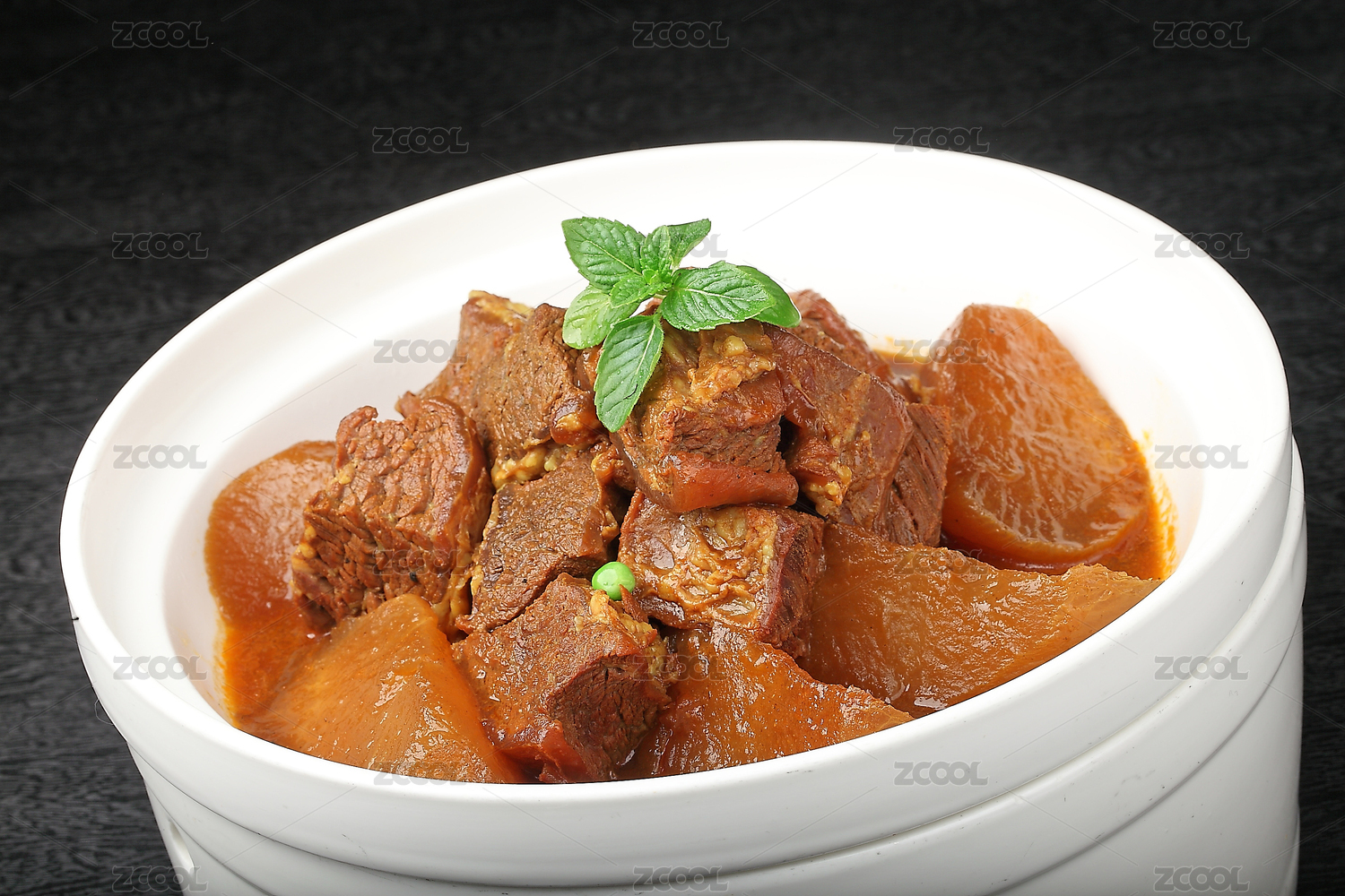 盘子里的红烧牛腩萝卜烧牛腩牛肉