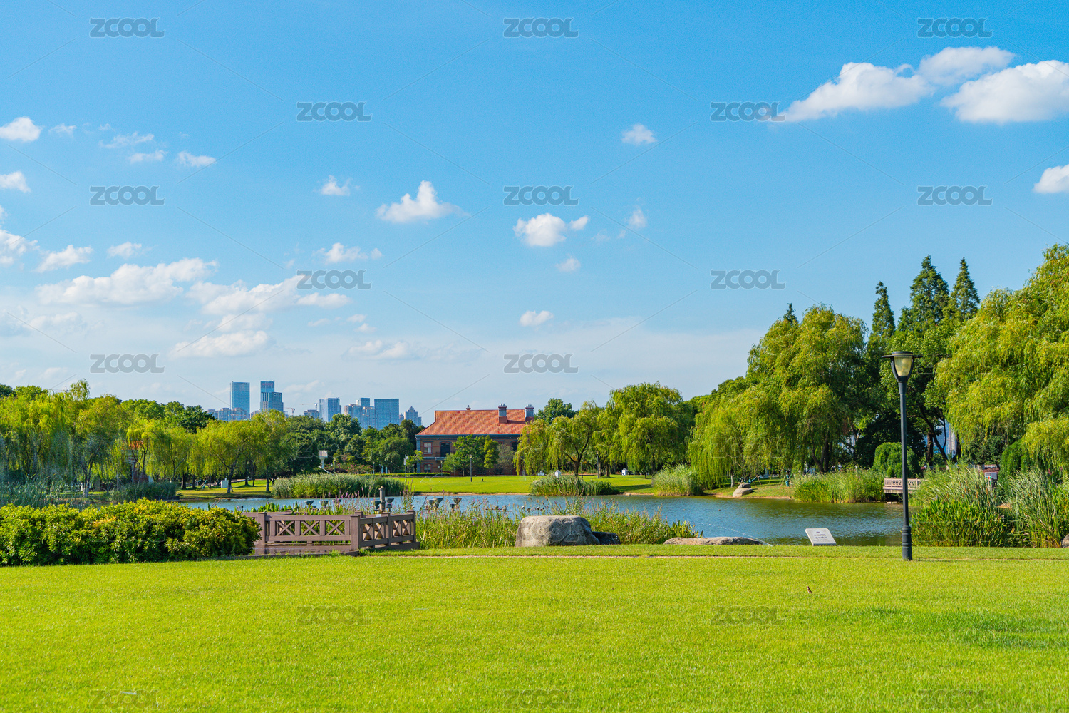橘子洲,风光,红屋顶,红楼,远眺,高楼大厦,绿草,郁郁葱葱,草坪,草地