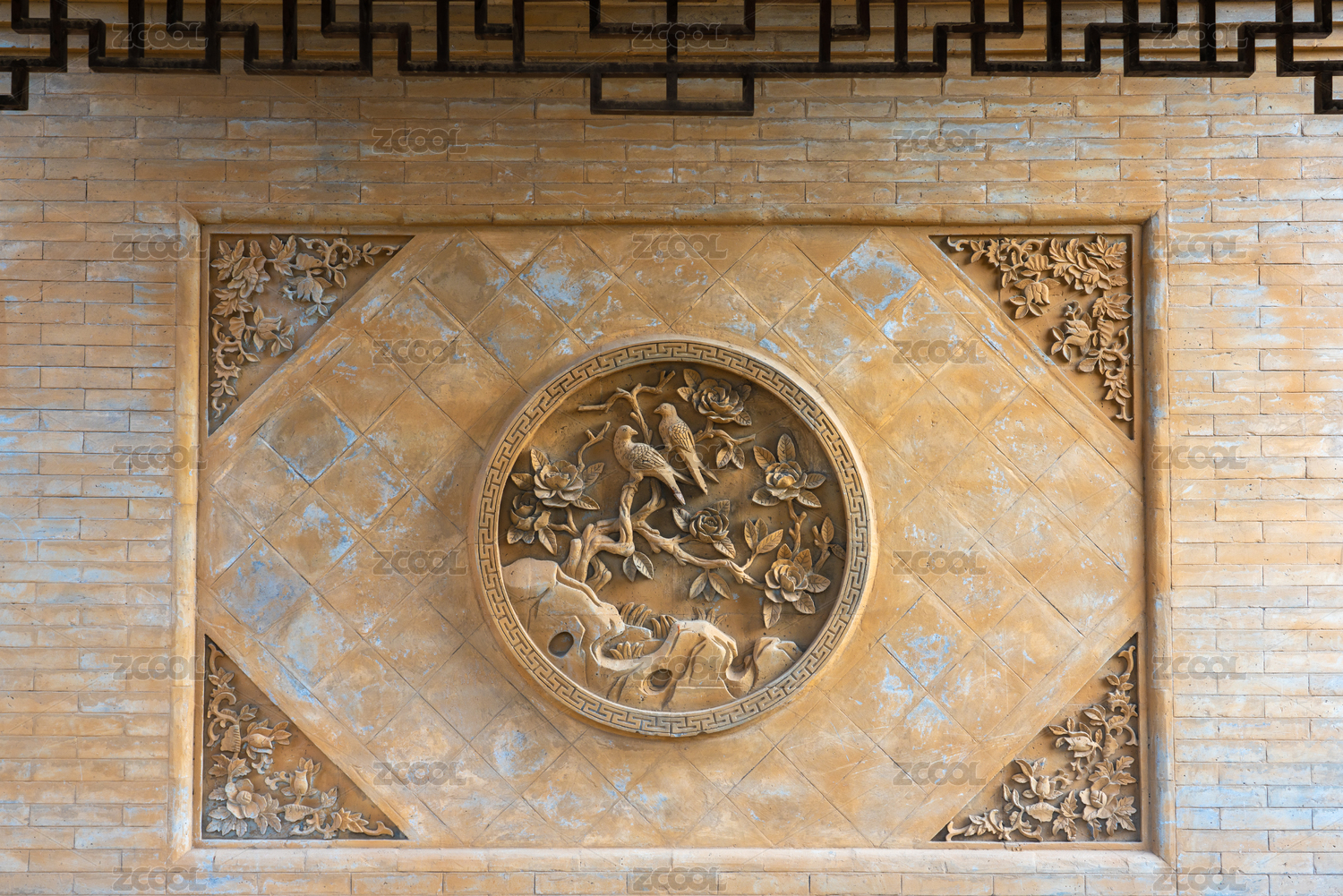 山东省聊城市山陕会馆外圆内方牡丹花屏风墙