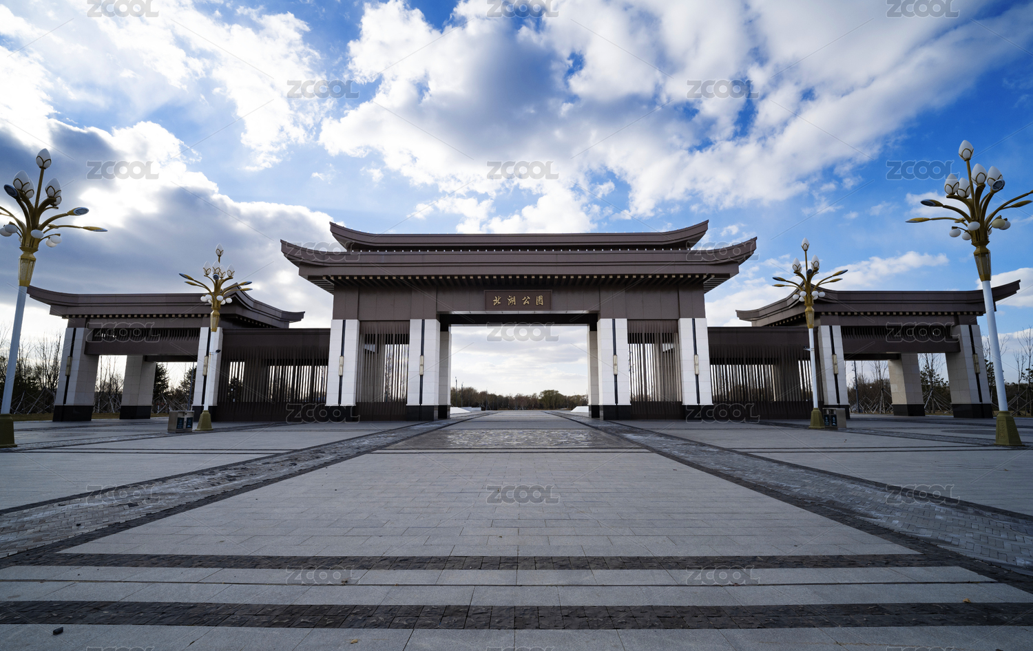 中国江苏省滨海县月亮湾景区牌坊园林建筑