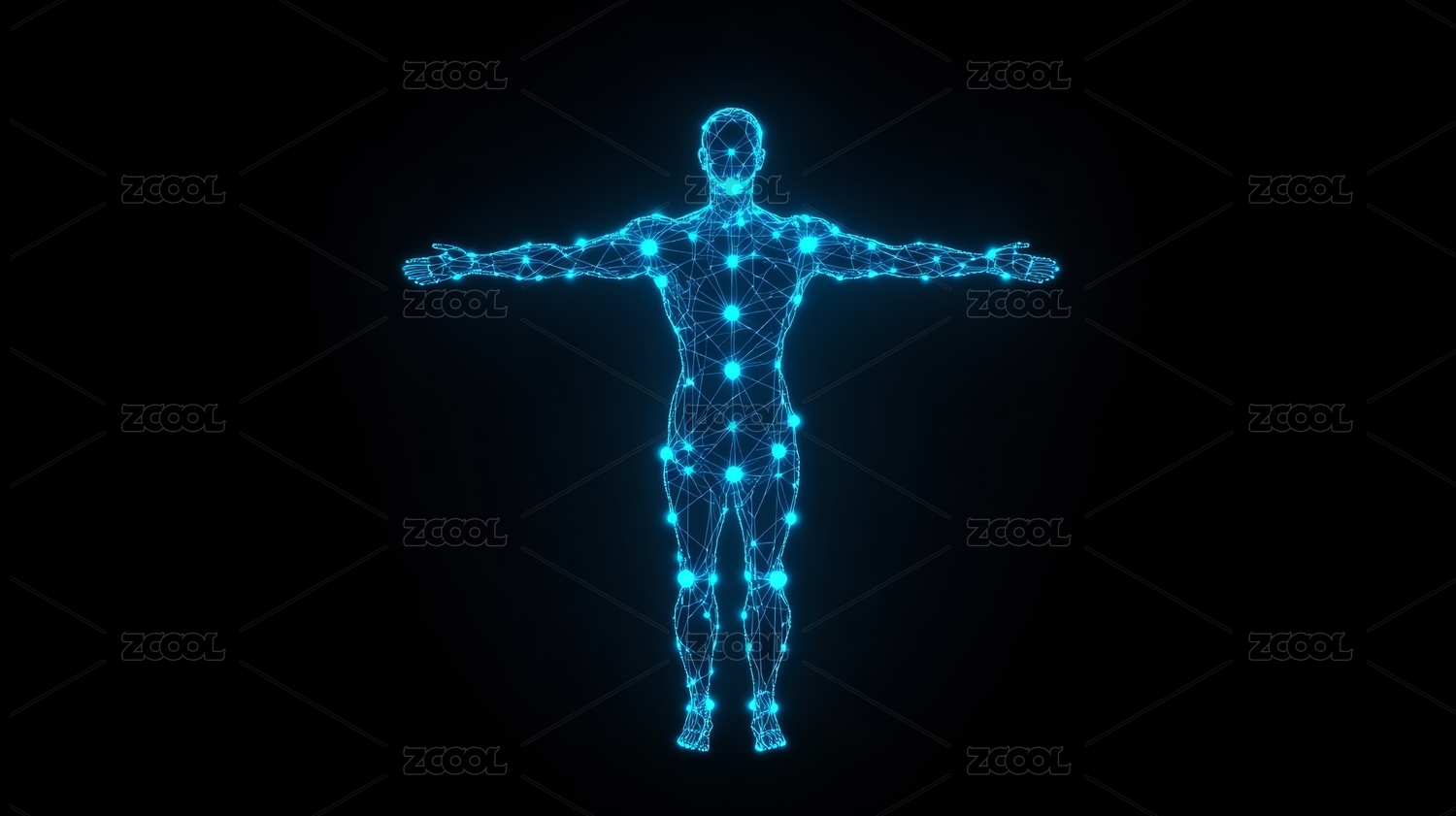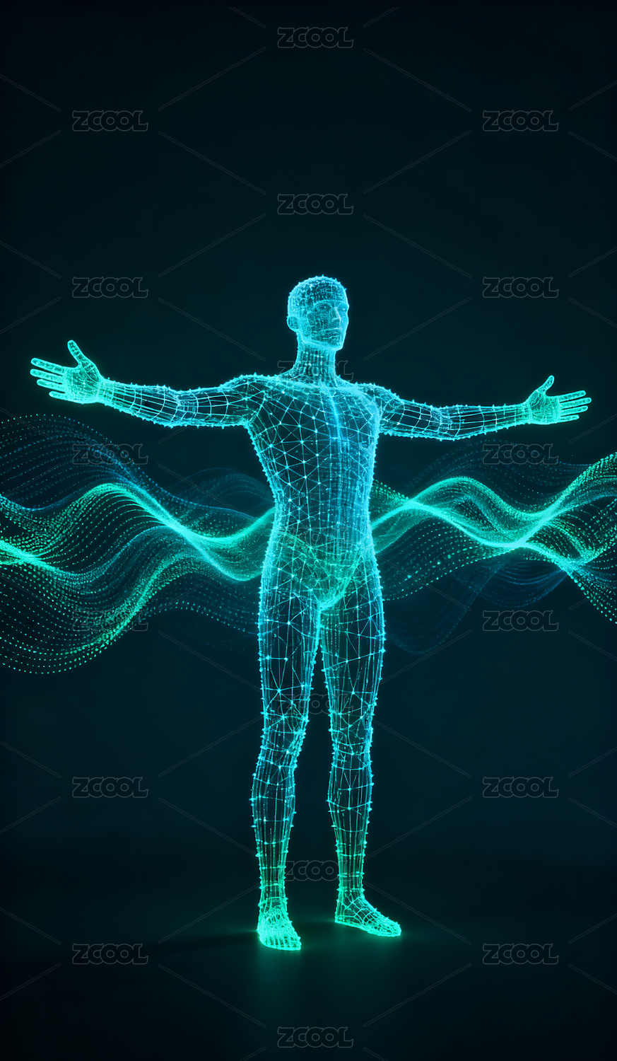 蓝绿色商务科技医疗全息人体结构深色背景