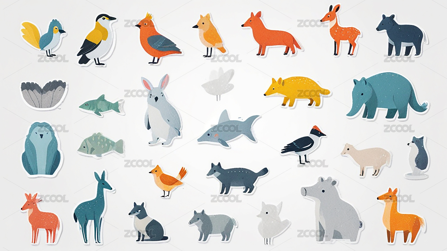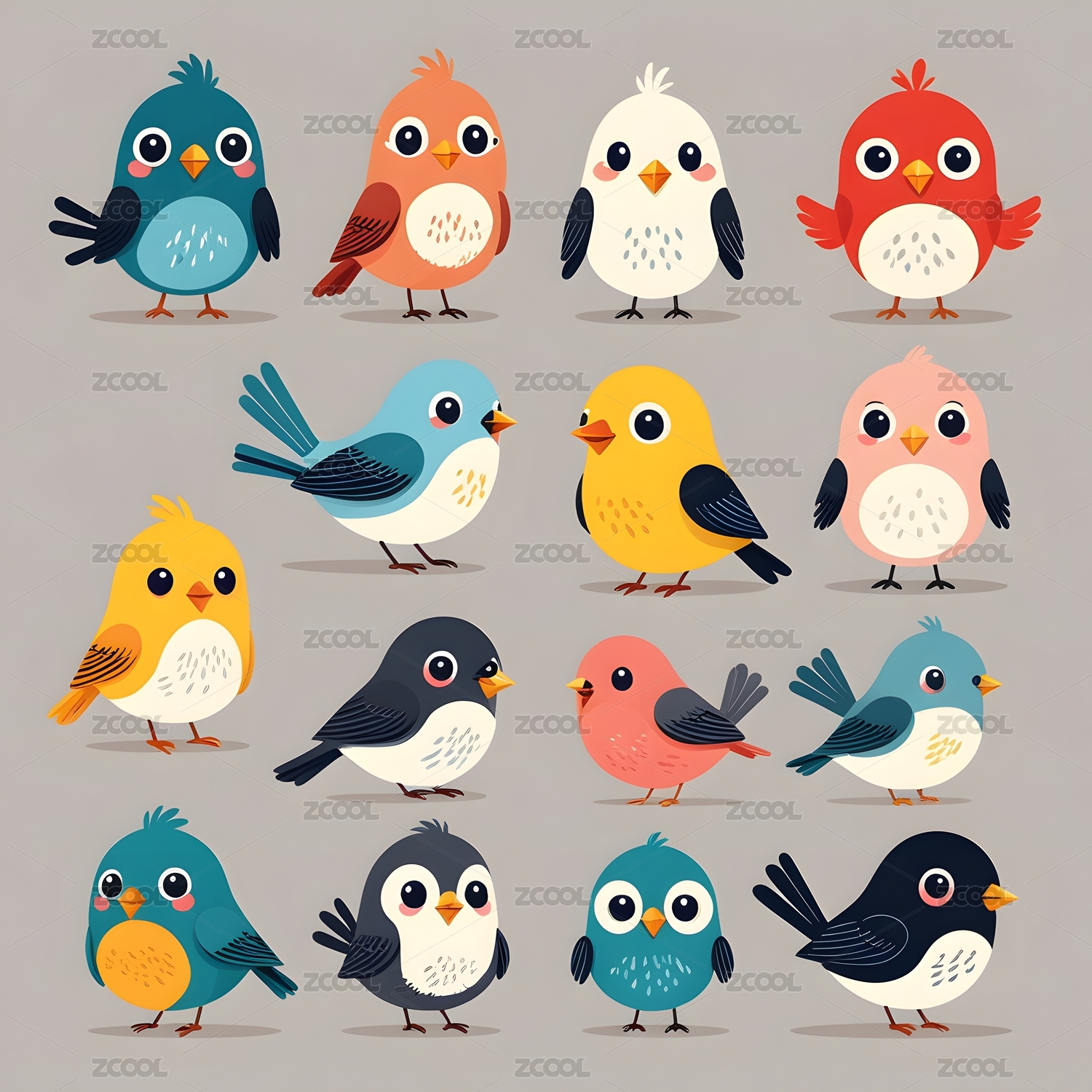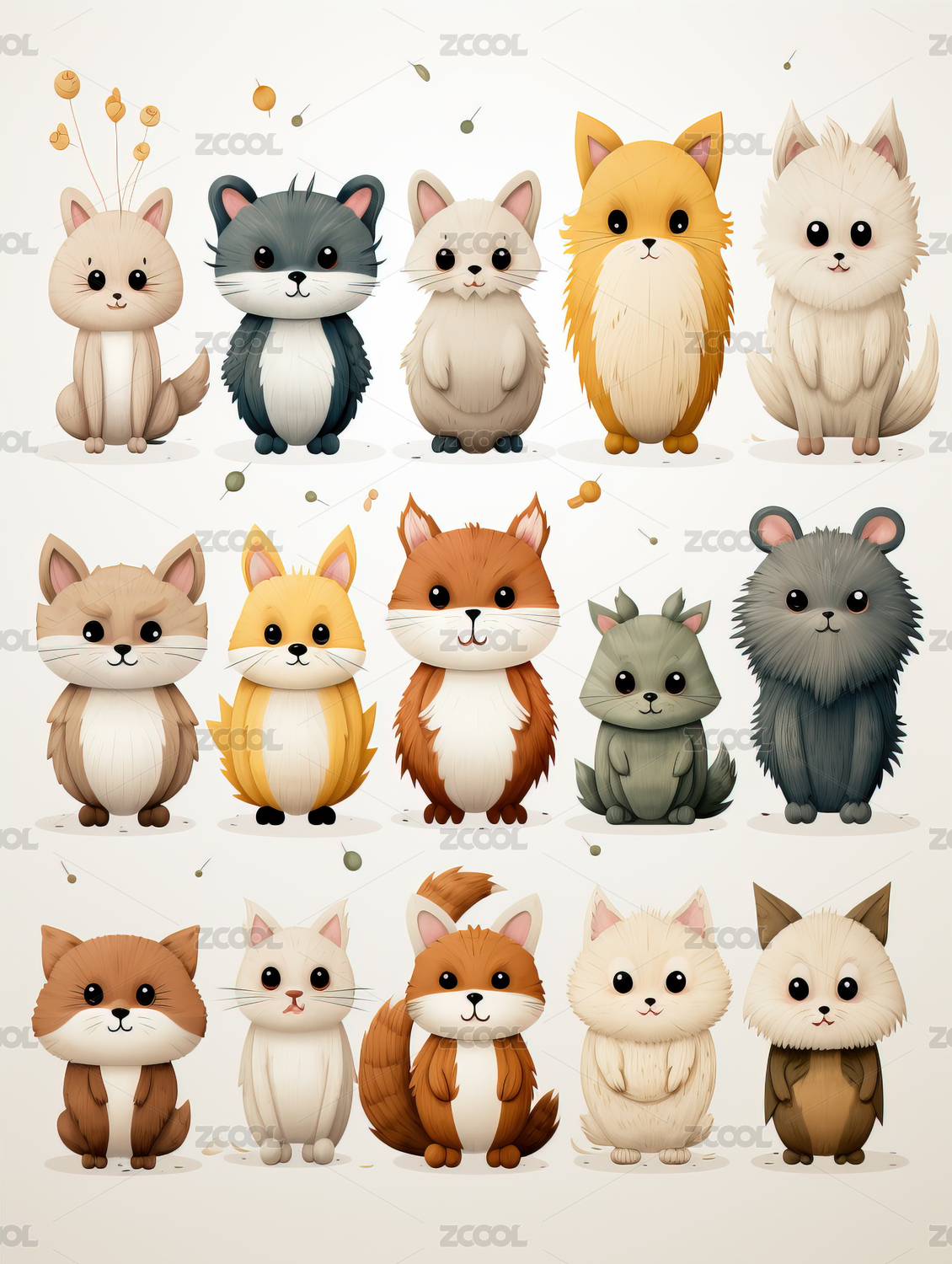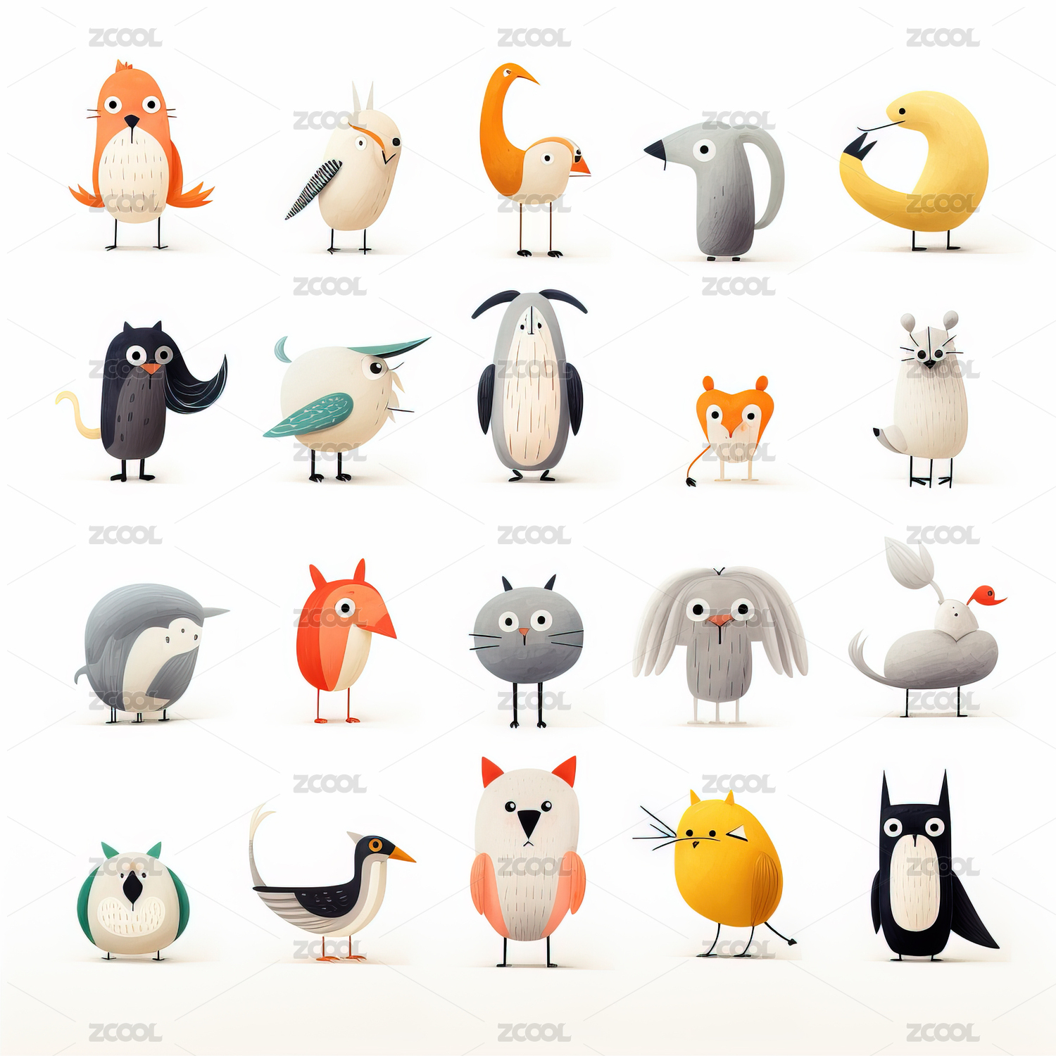 卡通动物手绘家畜牲畜鸡狗猫猪鸟