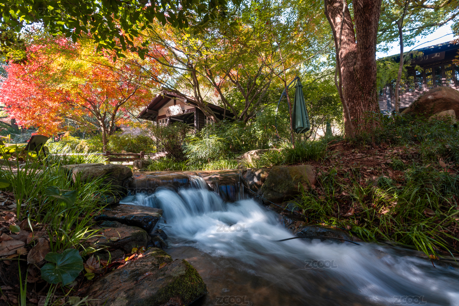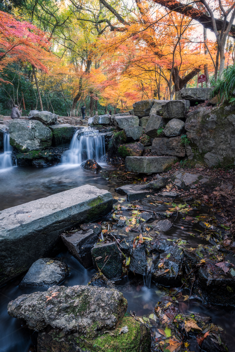 杭州,中国茶叶博物馆,秋天,枫叶,红枫,红叶,黄叶,溪流,溪水,自然