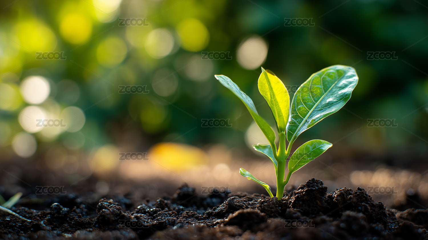 阳光下新生嫩芽 翠绿植株茁壮成长