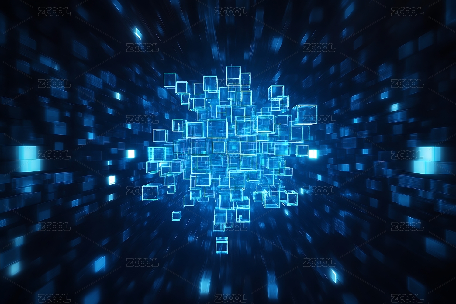 科技,未来,数字化,数据,流动,光线,蓝色,矩形,方块,抽象