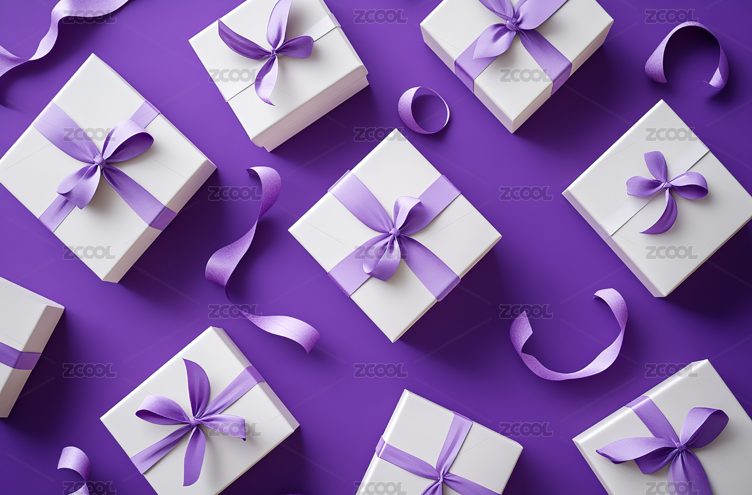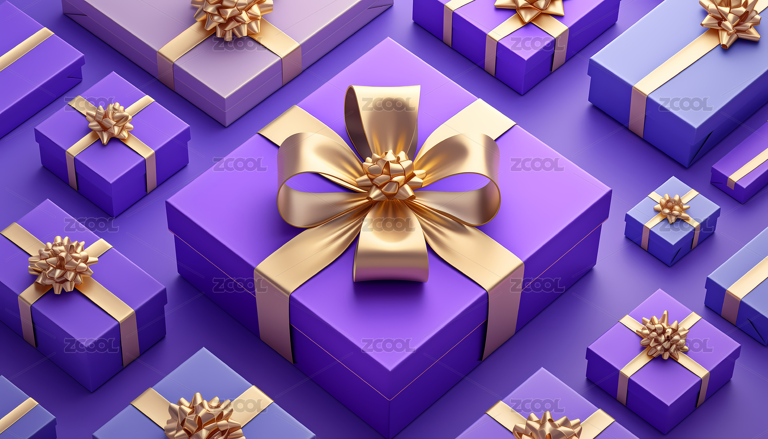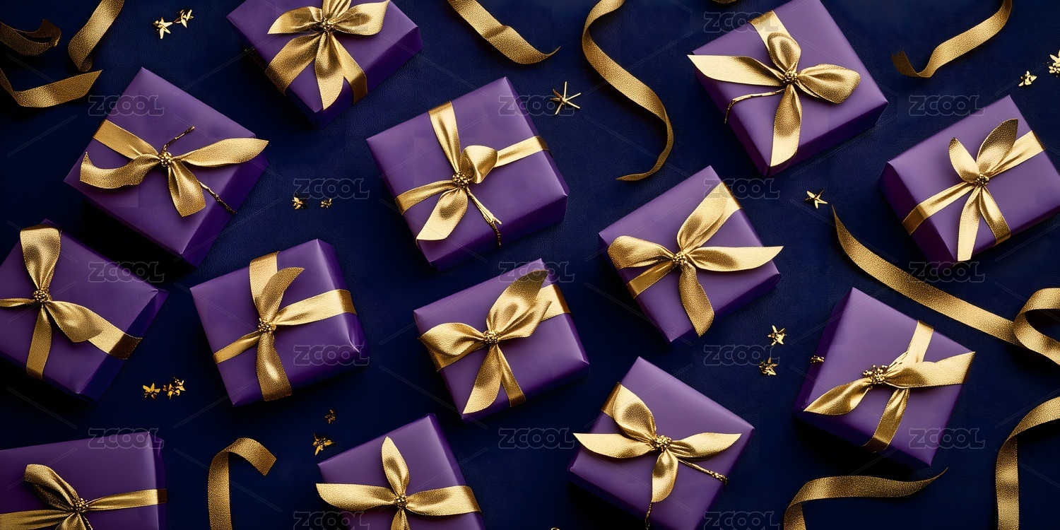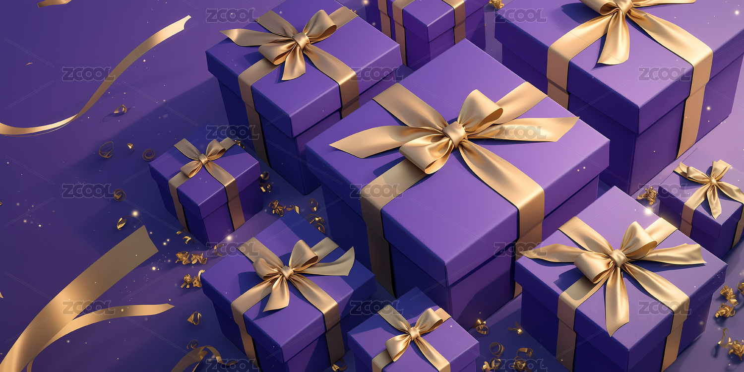 紫色礼盒与金色丝带的节日氛围