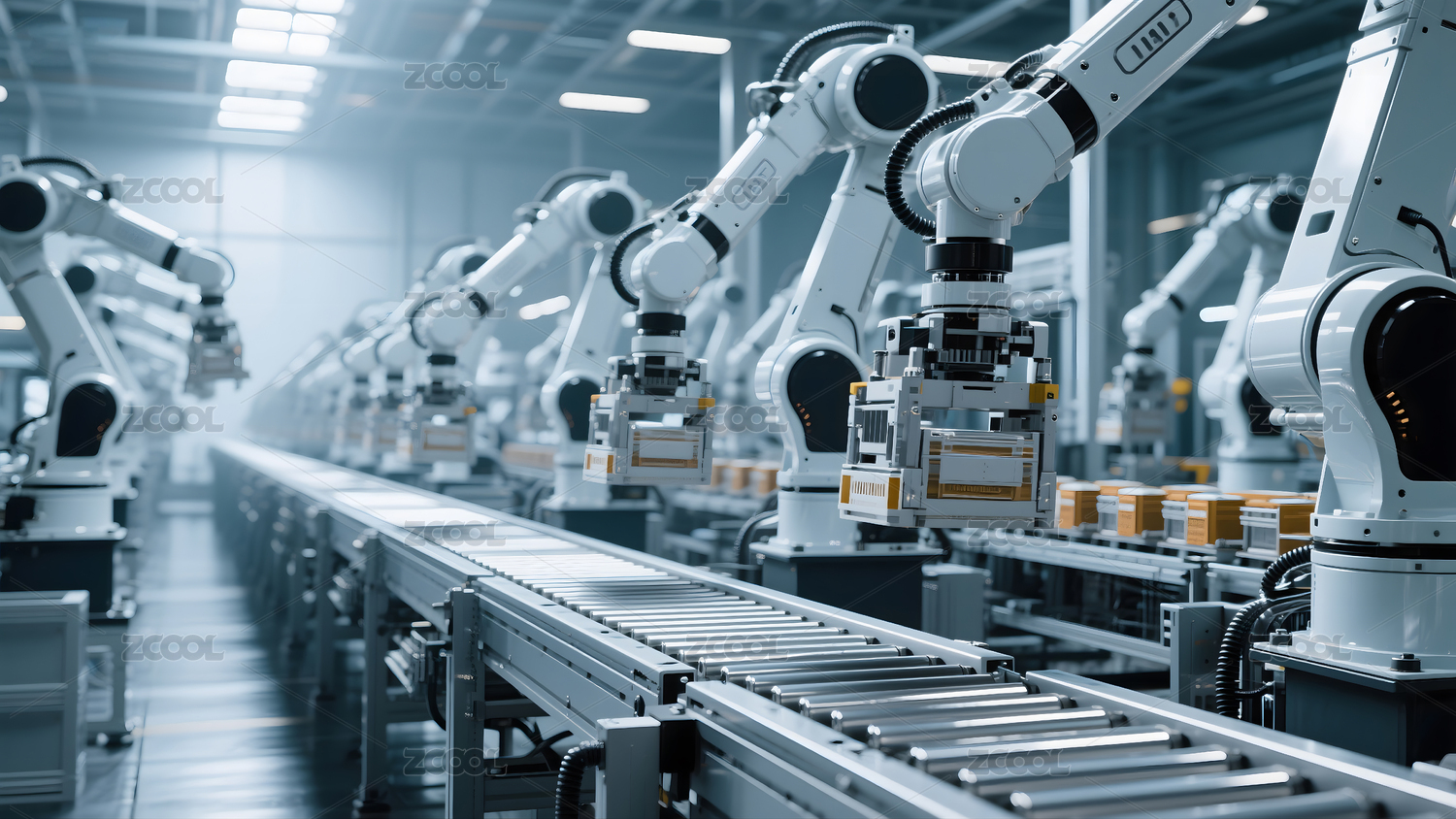 蓝白机械臂工业车间