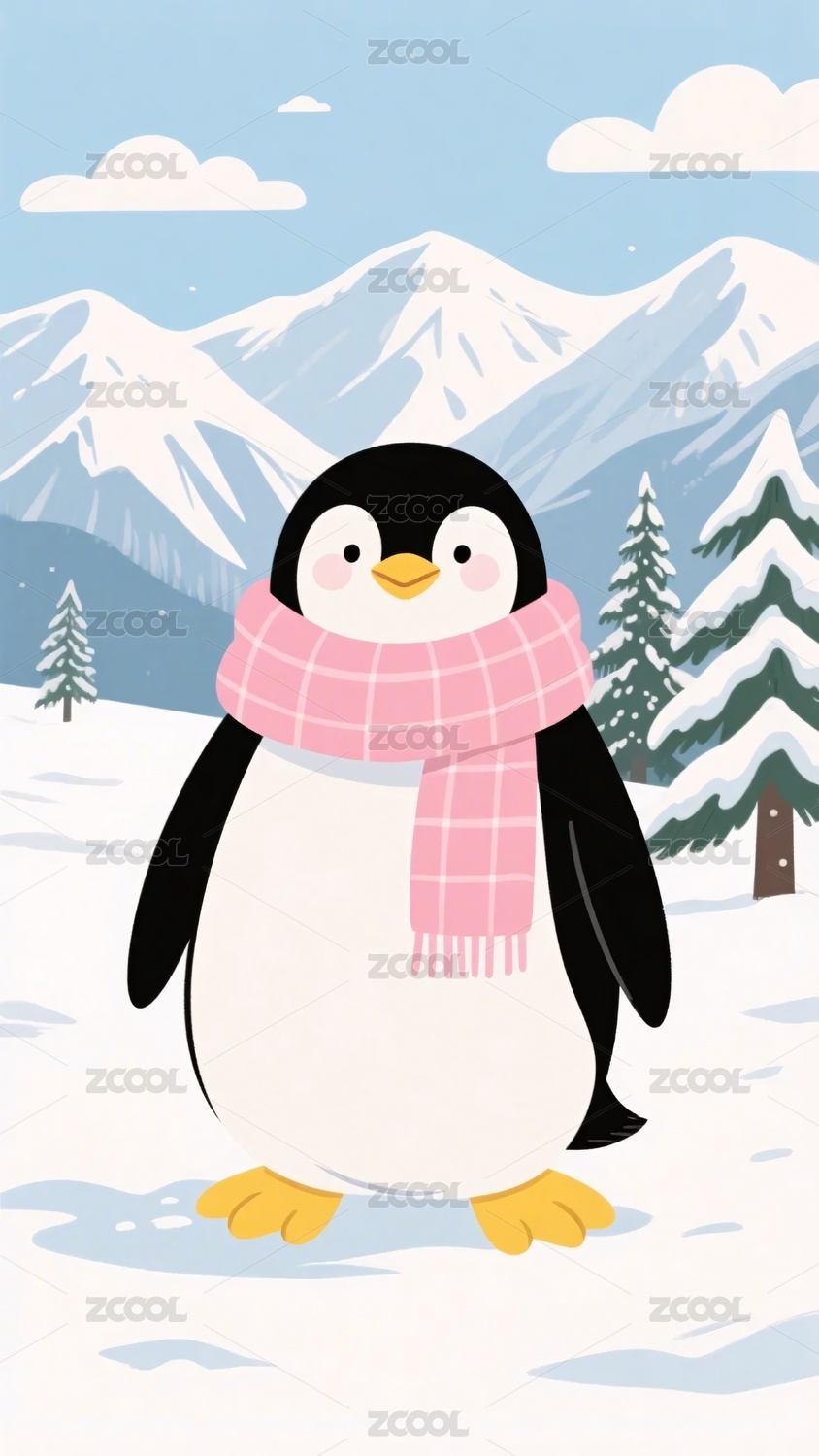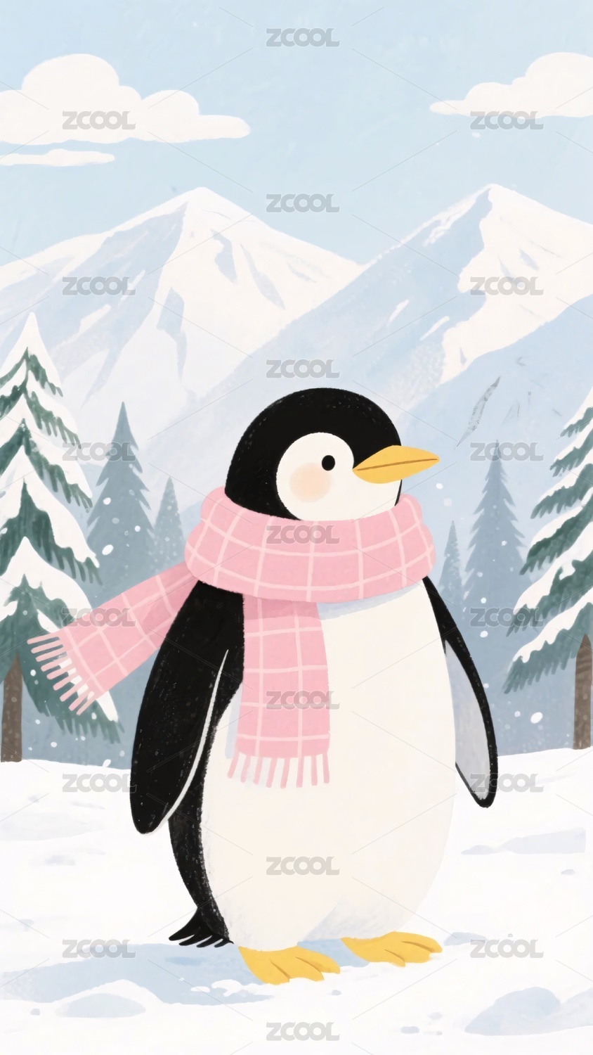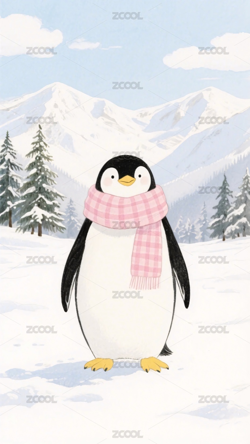 雪地围巾企鹅插画