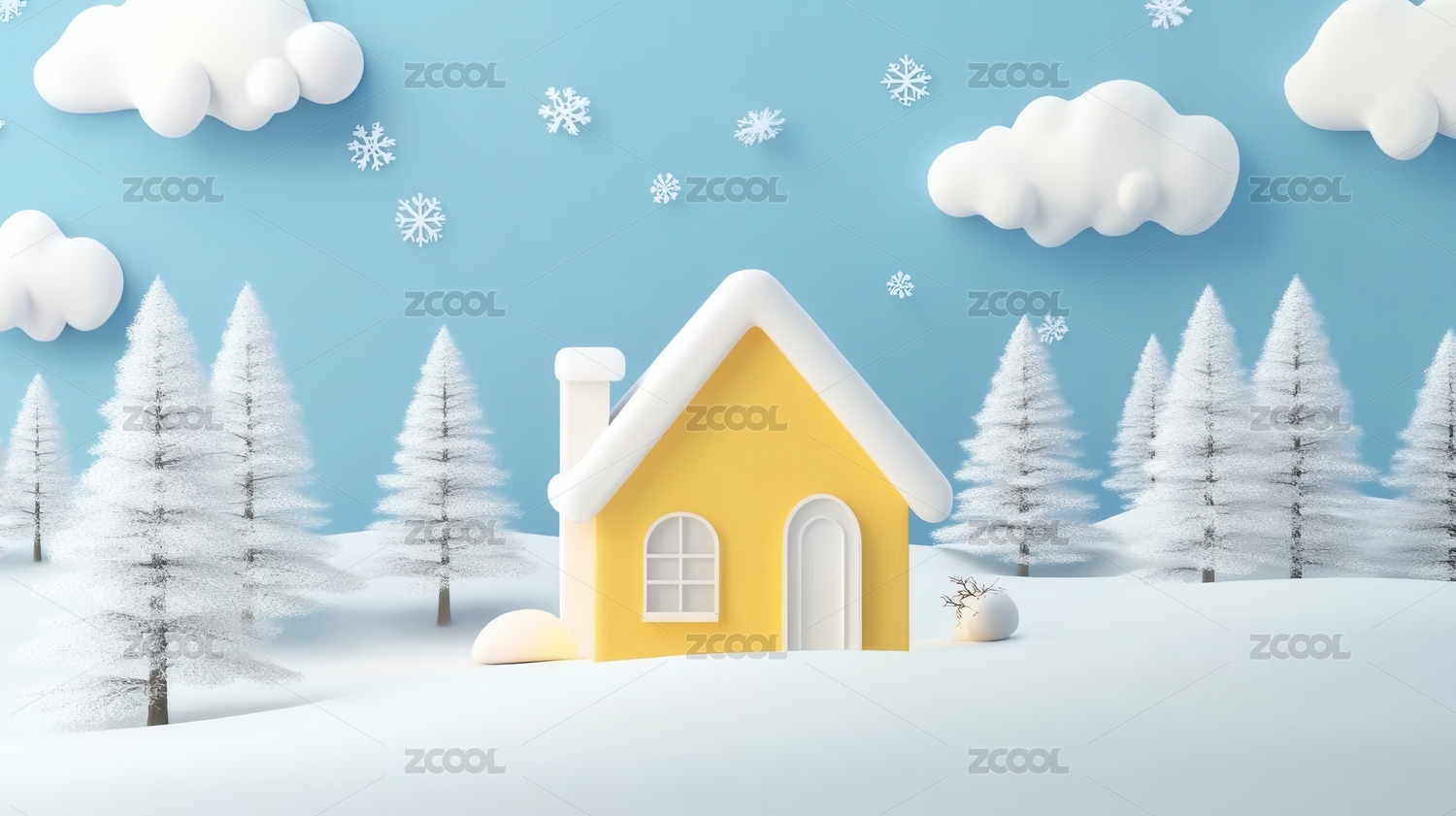 圣诞节下雪房子立冬节气雪人房屋场景插画