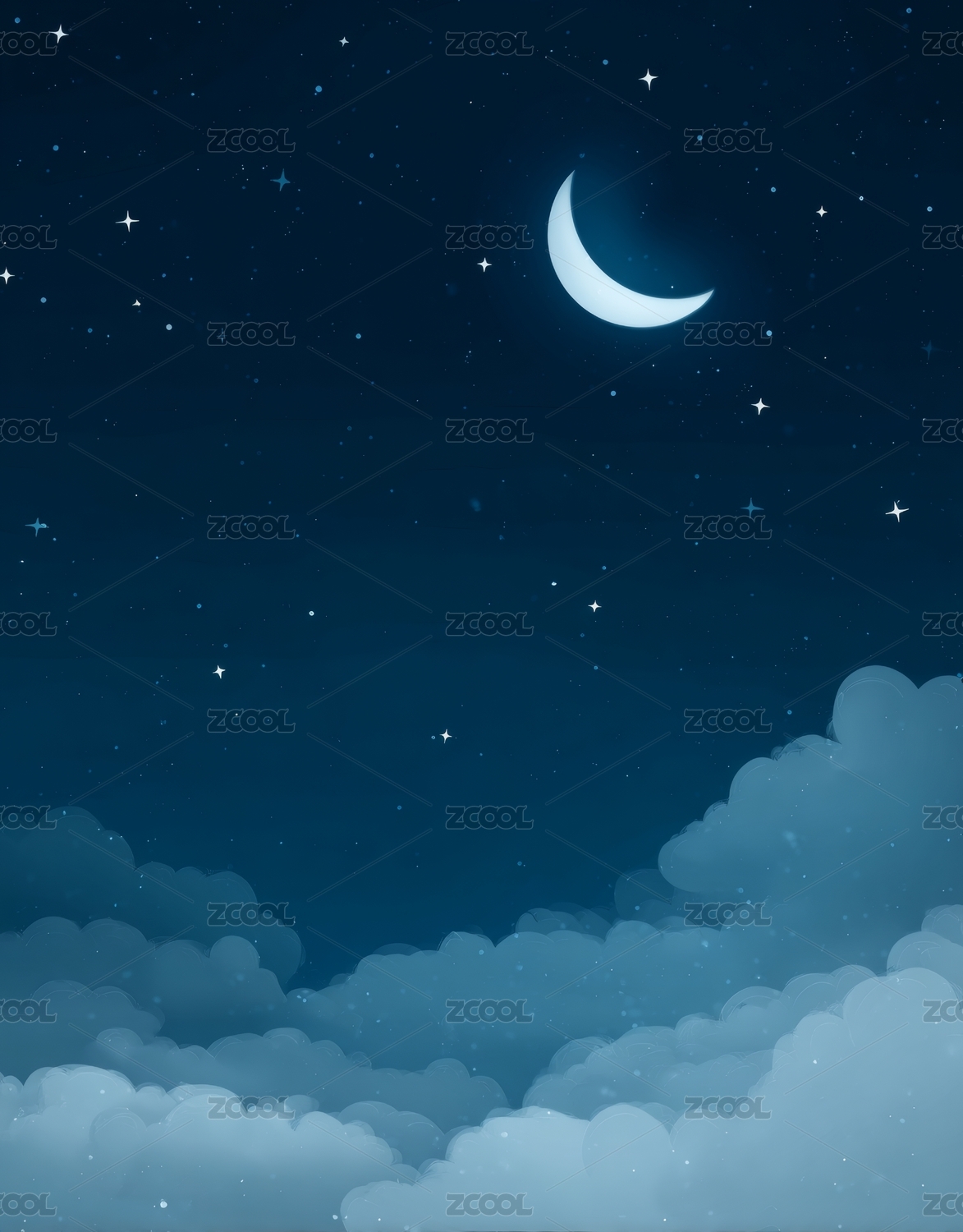 卡通蓝色夜空云彩月牙插画
