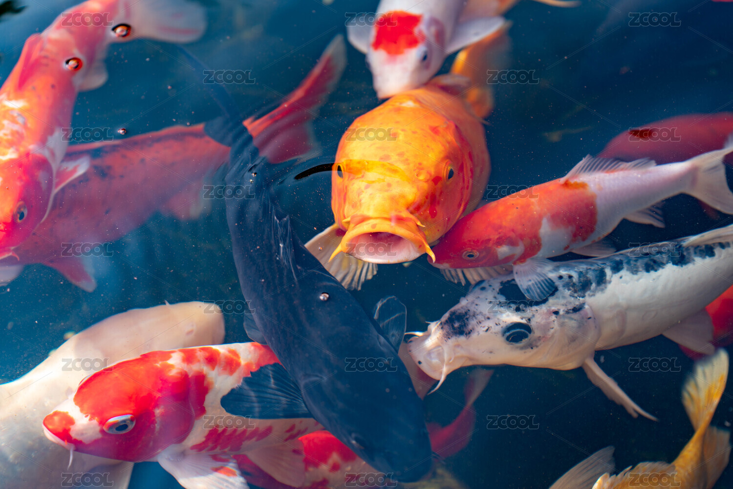 俯视,彩色,多彩,锦鲤,观赏鱼,红鲤鱼 花脊鱼,水中活宝石,鱼,观赏,水