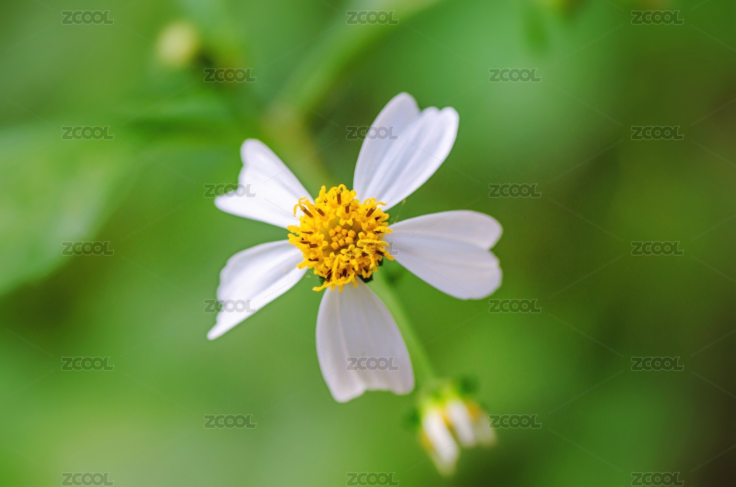 田园里盛开的几朵鲜花白色雏菊花卉特写