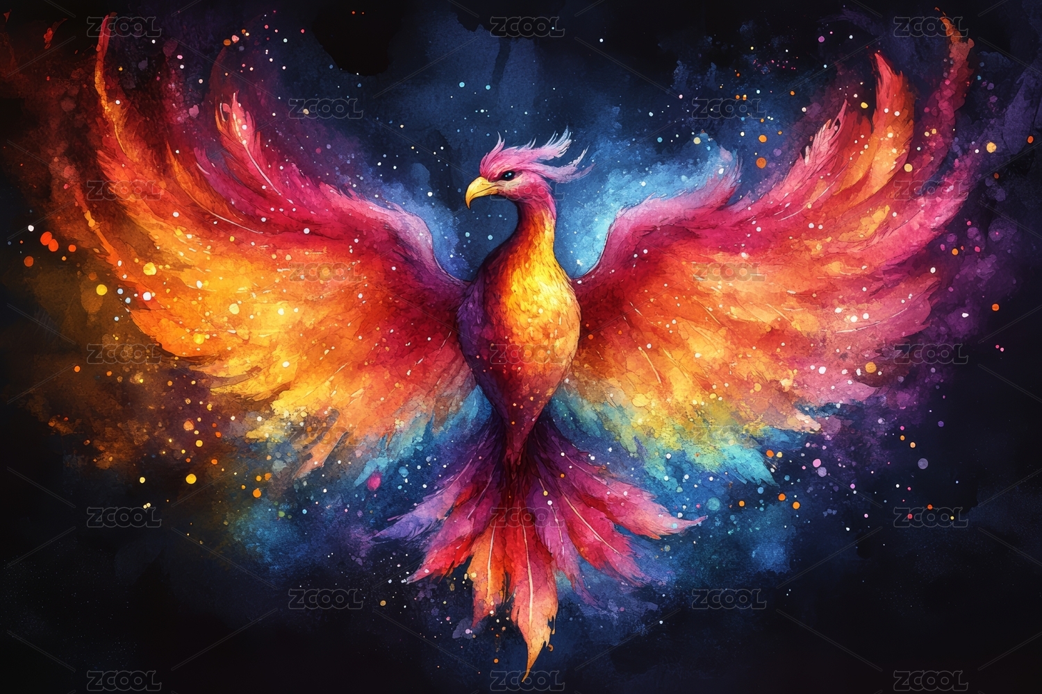 山海经神话传说天空飞翔火凤凰3D立体插画