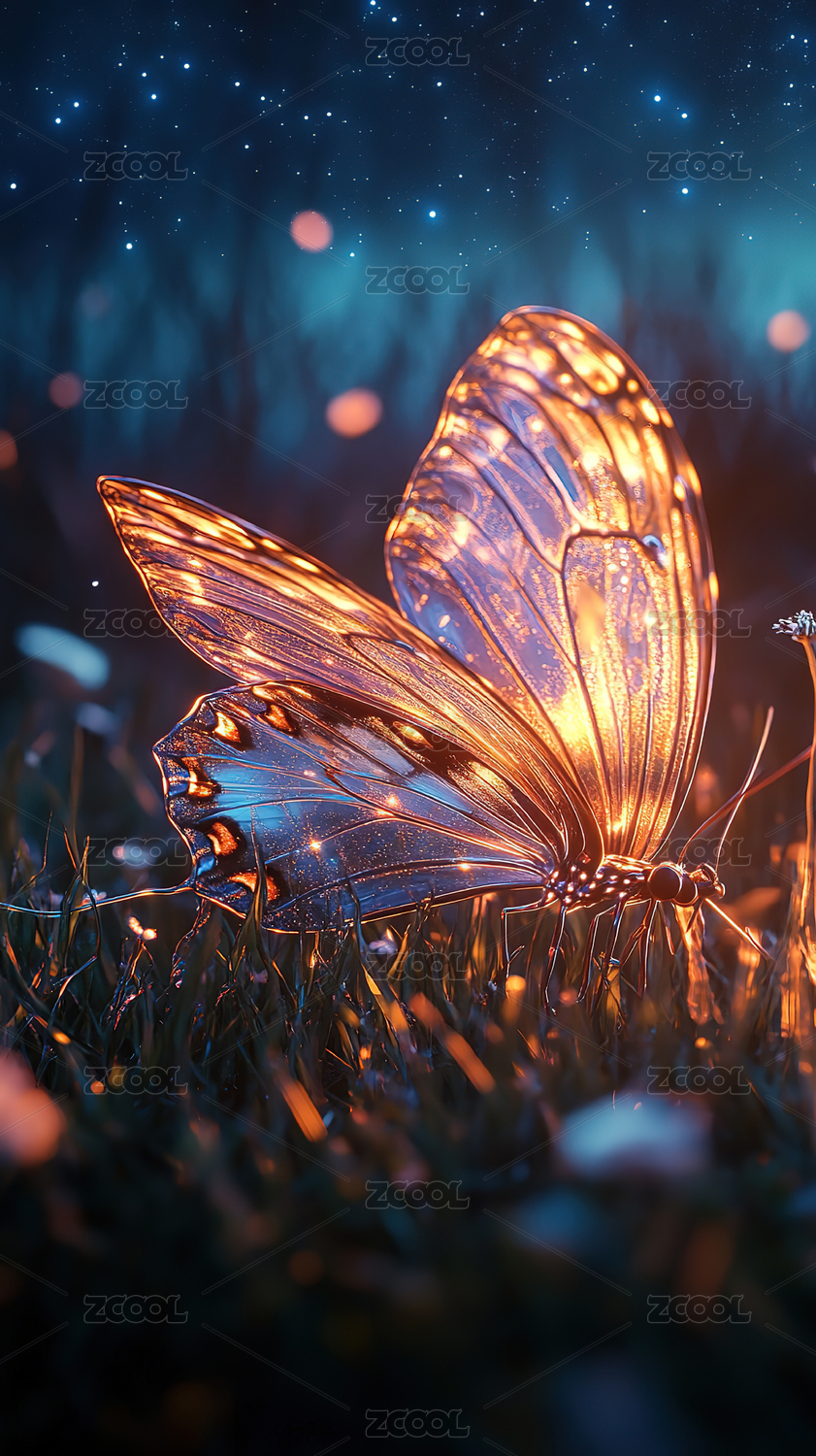数码科技玻璃水晶蝴蝶抽象图形海报背景