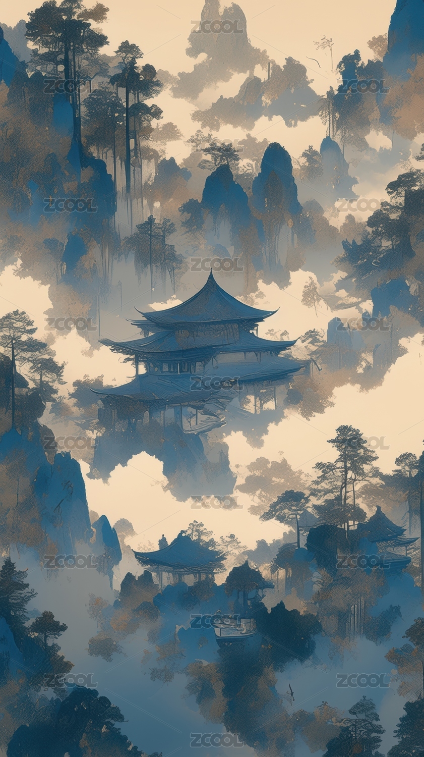 寺庙,云,阳光,油画,涂鸦,自然,卡片,塔,水墨画,山水画