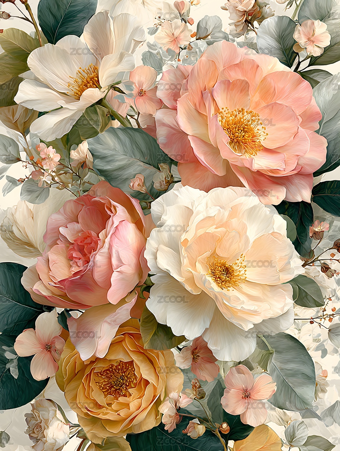 海报,复古,牡丹,花卉,自然,艺术,油画,抽象,花束,花